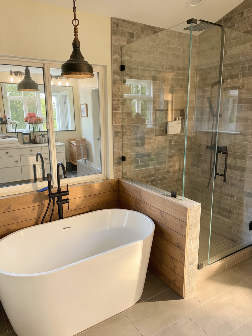 make the window just trees and sunshine outside get rid of the blue thing on the window sill and get rid of the pendant reflected in the window