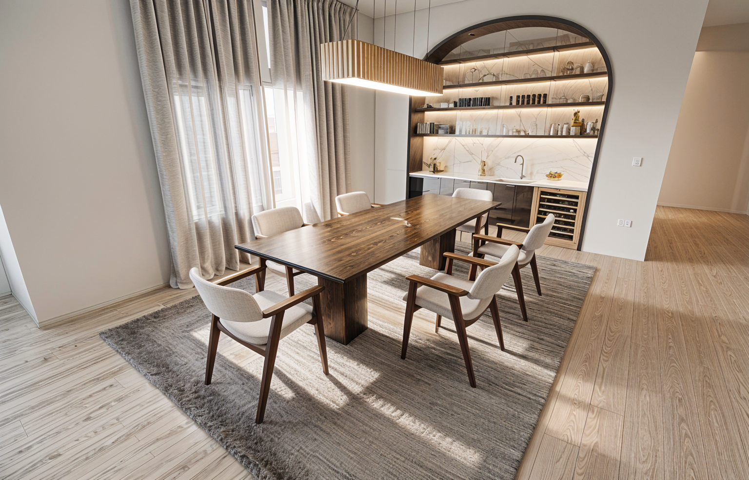 soft lighting modern kitchen walnut fluted cabinets add decoration make homie pendants are a metal gold satin finish