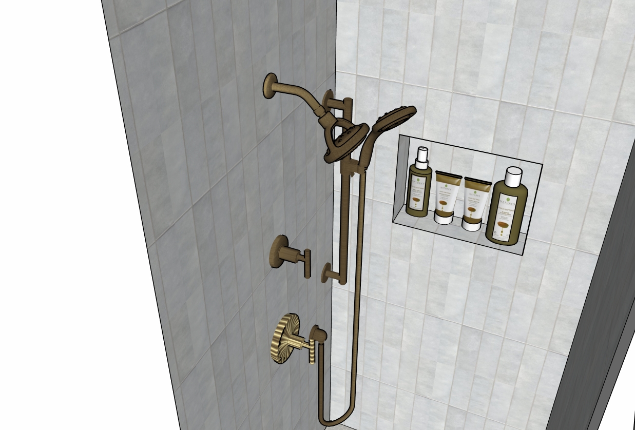 make the plumbing look shiny and nice make it all look realistic with some lighting coming down from the ceiling and some niche lighting