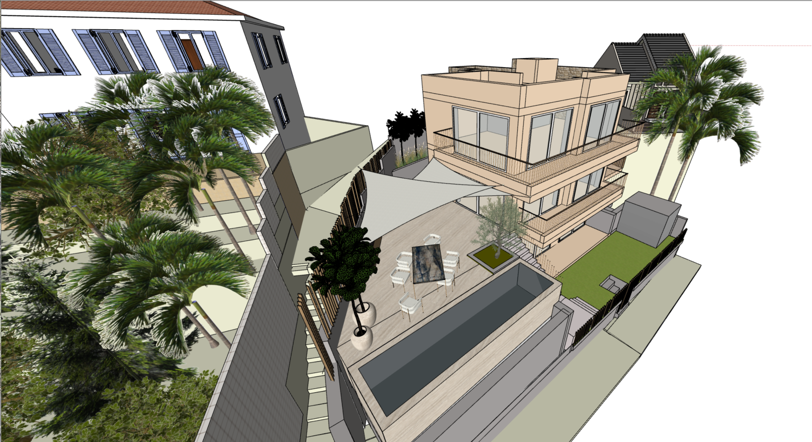 the main bulding is in shell pink color without any pattern floor is in light white cream marble color in the back there is house and trees location bra croatia