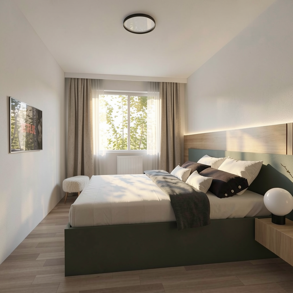 transform simple rectangular revit massing models into refined architectural volumes inspired by contemporary european architecture use elongated sloped and stepped building forms breaking rigid orthogonal geometry into dynamic angular silhouettes emphasize deep window recesses vertical rhythm and repetitive structural frames apply a monolithic material language with dark red brick colored concrete or metal panels combined with large glass surfaces introduce vertical greenery integrated into fa ades climbing plants growing between structural bays design the ground floor as transparent open and publicly accessible with large glazing and recessed arcades upper floors should appear heavier and sculptural slightly cantilevered or inclined overall style contemporary minimalist tectonic architecture inspired by modern industrial aesthetics adaptive reuse and sustainable urban design daylight rendering soft natural light human scale figures urban public square context