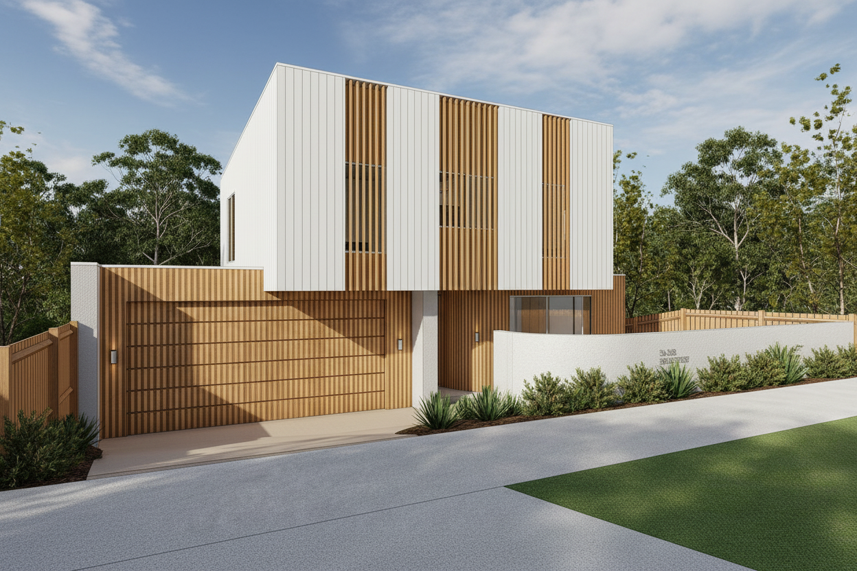 exterior walls uses a combination of off white limestone and dark gray wpc planks dark gray aluminum cladding for ceiling