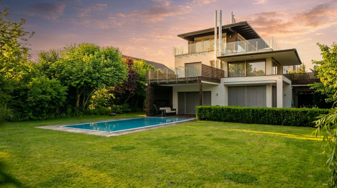 create a rendering of this home that is more aligned with current trends it is a luxury asset do not change the architecture just enhance the image quality we have to sell it the lights should remain the same as in the reference