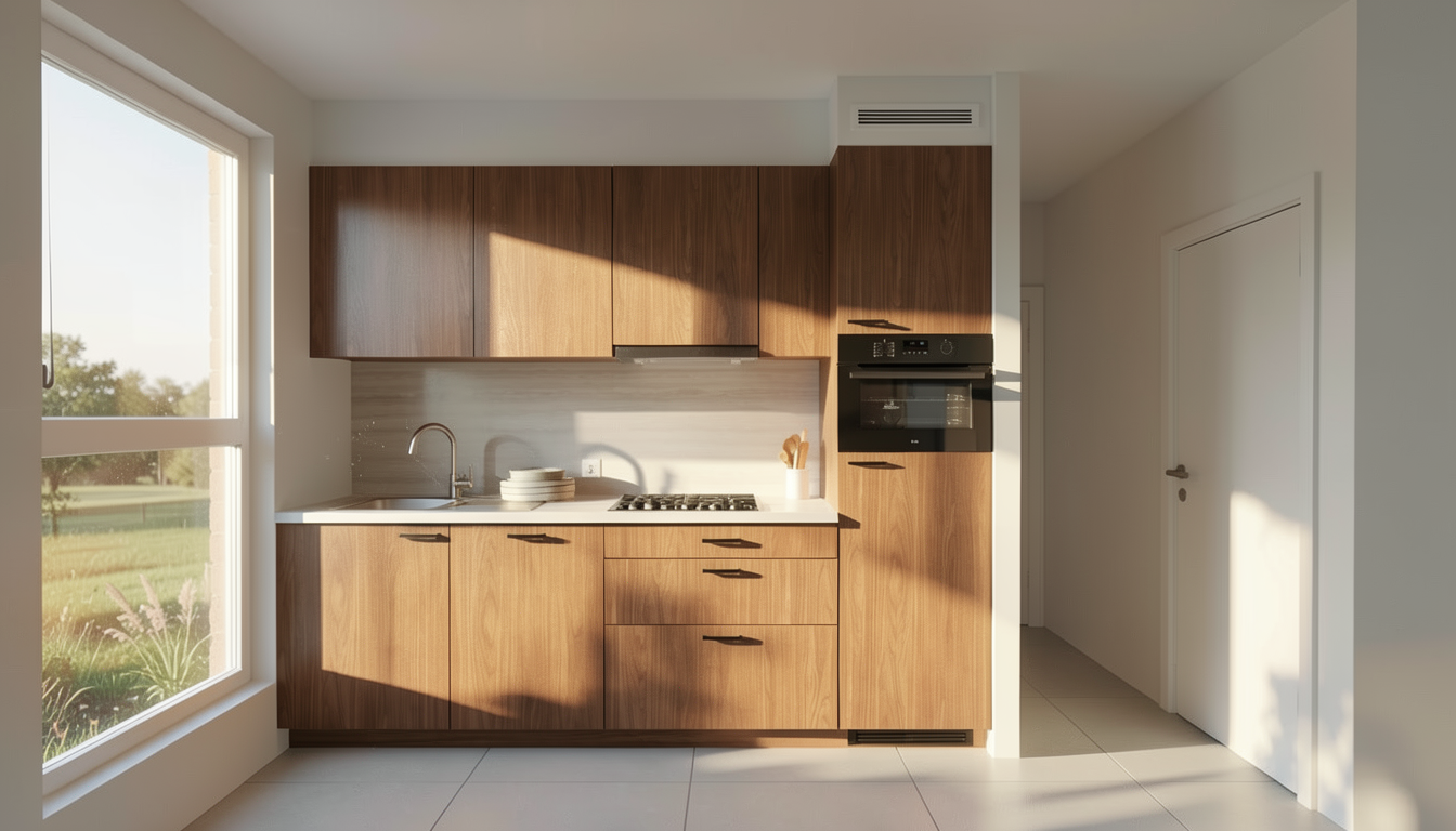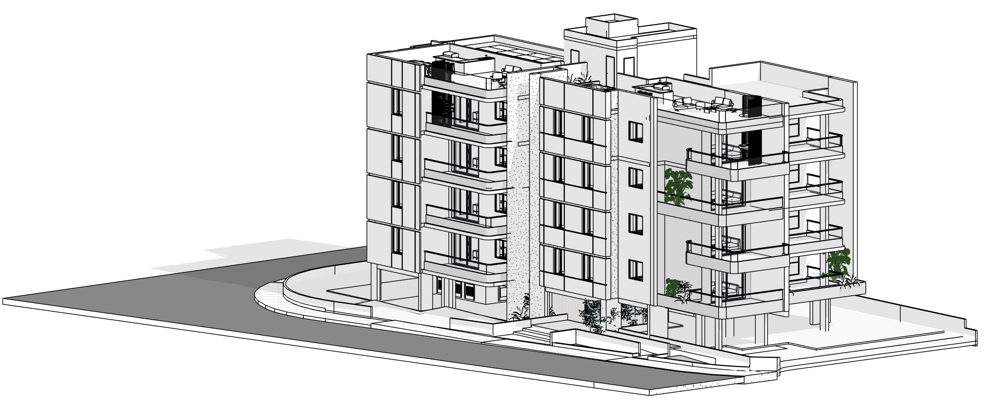 luxury contemporary mid rise residential apartment building elegant white limestone and smooth plaster facade exposed architectural concrete vertical core large floor to ceiling glass windows transparent glass balcony railings refined modern detailing premium materials realistic proportions located in a dense urban city environment surrounded by modern neighboring buildings of similar height detailed street scene with asphalt road sidewalks curbs parked cars a few moving cars pedestrians walking street trees and subtle landscaping urban furniture integrated naturally into the cityscape warm golden hour sunlight soft long shadows cinematic atmosphere realistic sky ultra photorealistic highly detailed architectural visualization preserve original architectural geometry