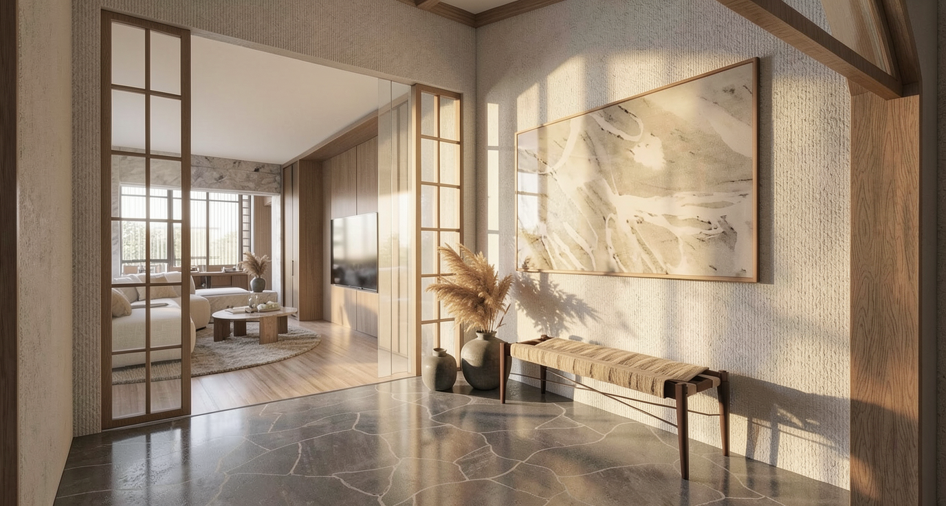convert this floor plan into a realistic isometric 3d view of a full house show the space from an elevated angle with furniture walls and details visible un mobilier pur doux une ambiance g n rale chaleureuse use the same furniture as shows on the plan do not change the orientation of the floorplan