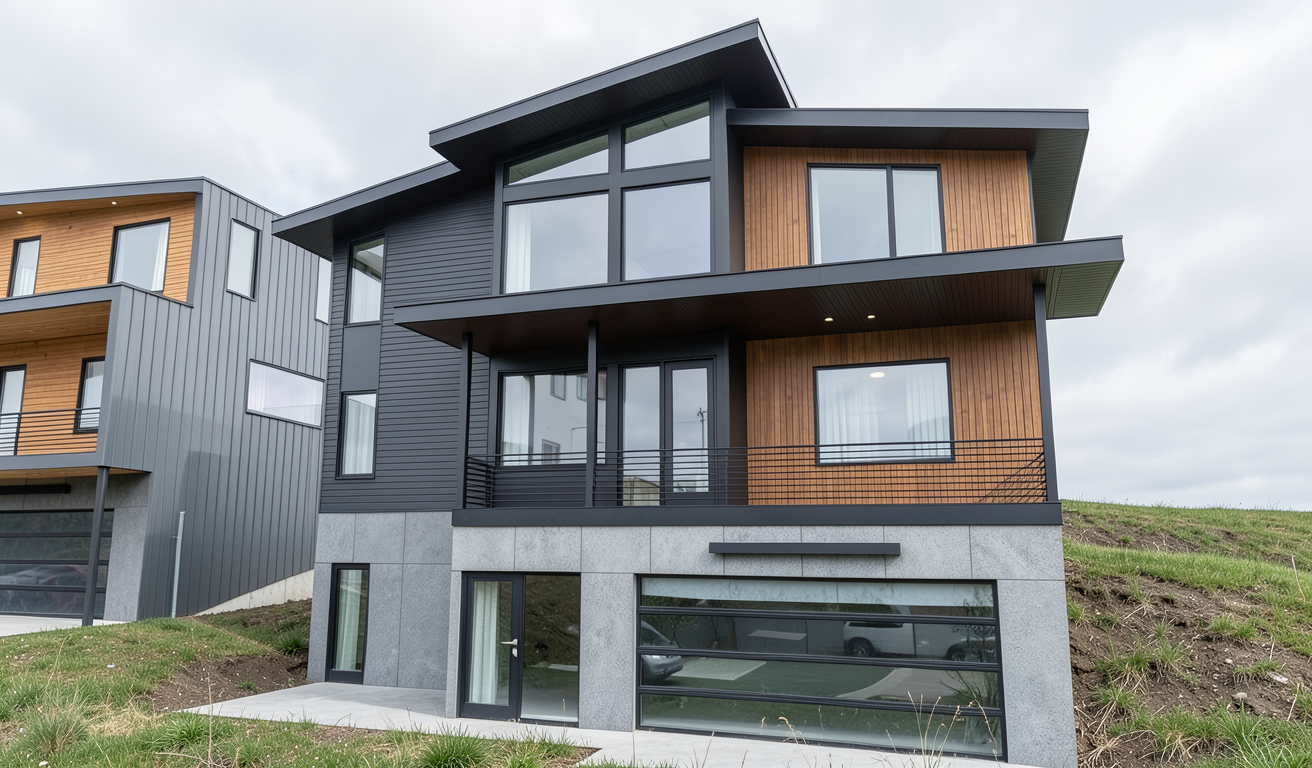 change the roofing and grey siding to vertical black steel