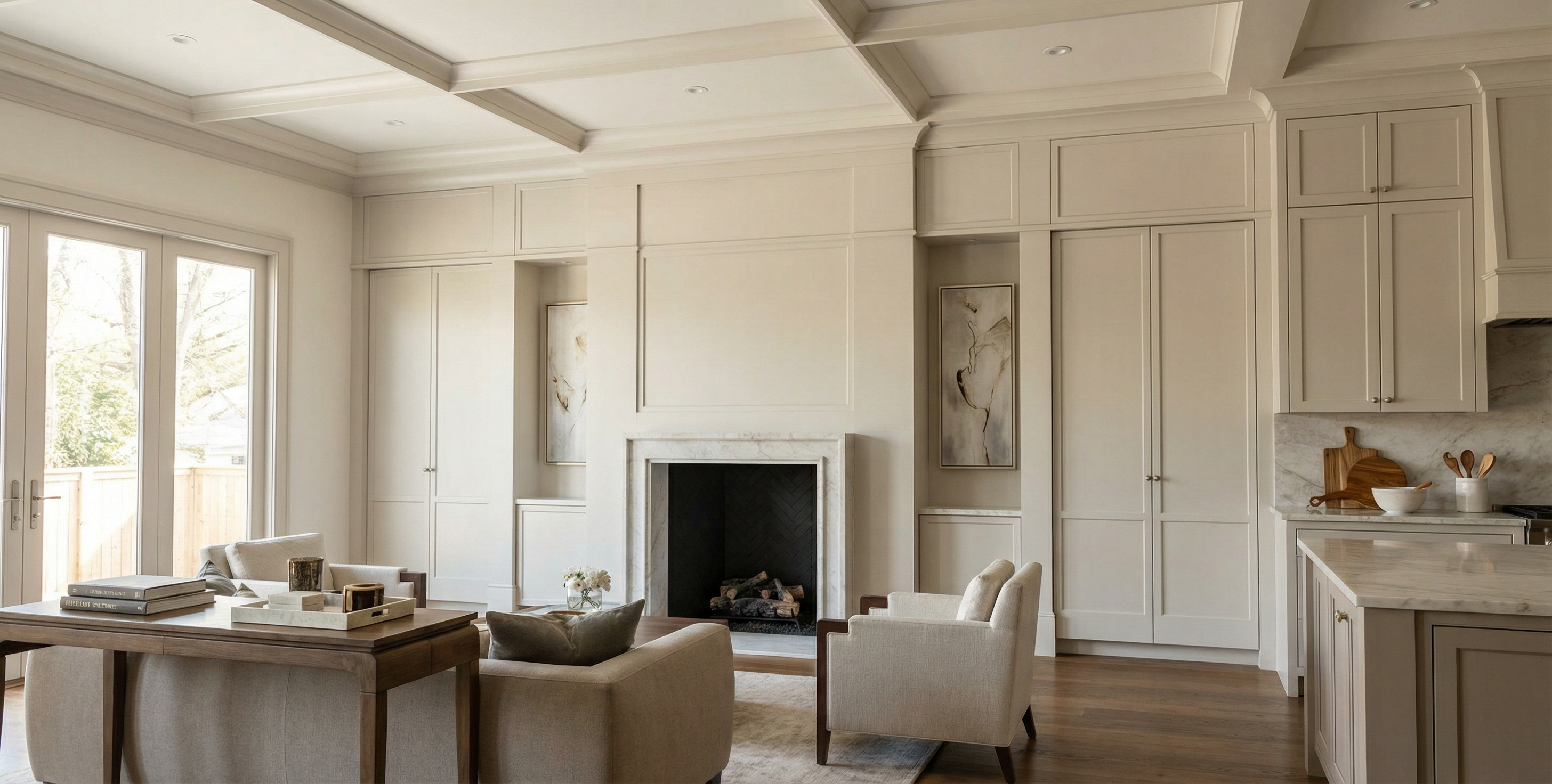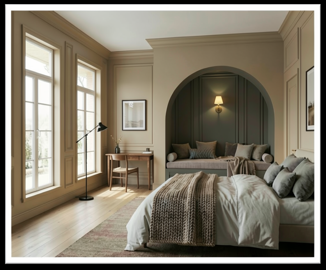 panel room divider modern design in light wood create a cozy and tranquil atmosphere with soft ambient lighting casting gentle shadows on a minimalistic light grey background