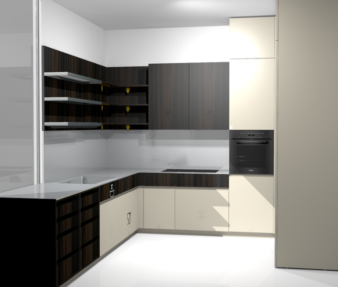 no signs on furniture cold tones modern kitchen decorative elements natural sunlight