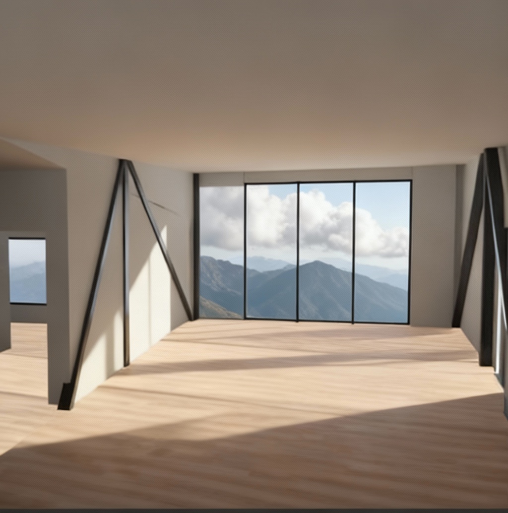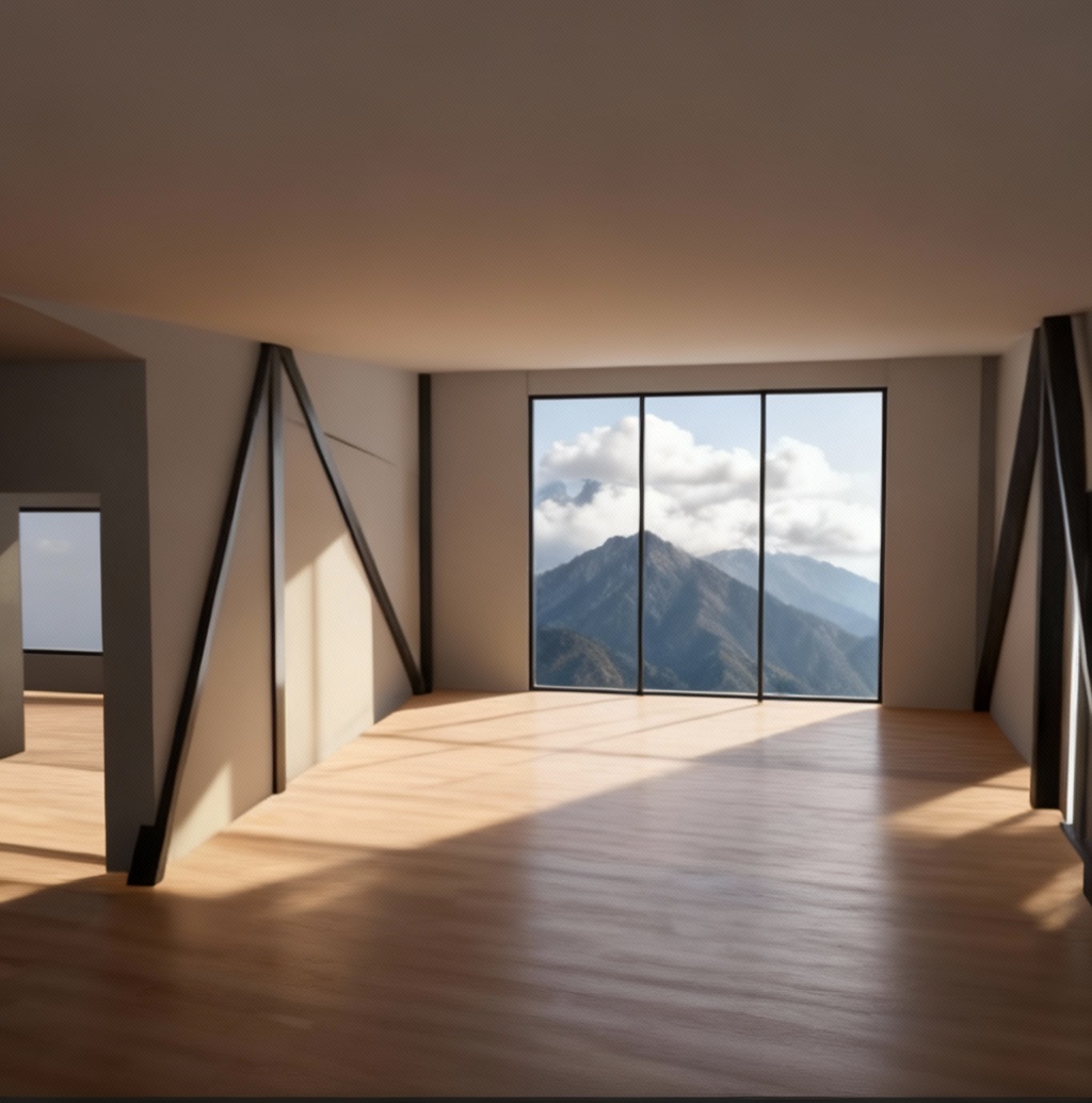 make it look like a day room the window is looking out to mountians and clouds make it look water color