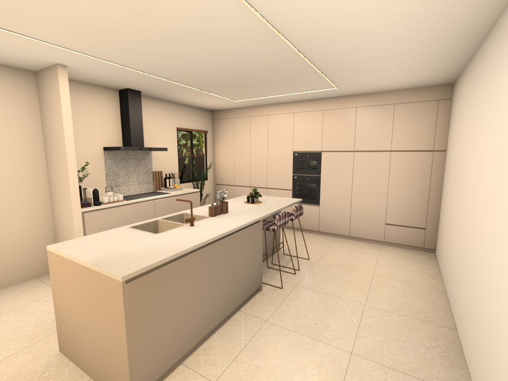 verbeter deze foto van een keuken tot een professionele interieurafbeelding optimaliseer de belichting zodat de ruimte helder natuurlijk en uitnodigend oogt met zachte realistische lichtinval en gebalanceerde schaduwen verhoog de scherpte en helderheid subtiel corrigeer witbalans en kleuren zodat materialen zoals hout steen metaal en lak natuurgetrouw en luxueus overkomen laat het geheel strak stijlvol en hoogwaardig ogen zonder de indeling meubels of architectuur te veranderen behoud een realistische uitstraling verfijn contrast en details verminder ruis en geef de foto een warme elegante interieurstijl zoals in een premium keukencatalogus