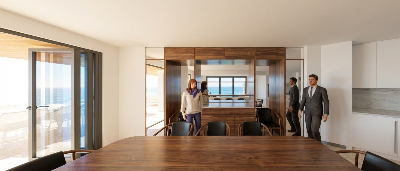 create a photorealistic 3d rendering of the bedroom of a 2 5 room apartment based strictly on the provided floor plan respect true dimensions window placement door locations circulation and proportions the bedroom should be designed in a modern warm minimalist and elegant style with light wood flooring soft beige and off white tones upholstered bed textured bedding linen curtains subtle wall lighting and refined built in storage if compatible with the plan the overall mood should be peaceful sophisticated cozy and bright with a premium residential feel keep the design clean uncluttered and realistic eye level camera soft daylight realistic materials architectural visualization quality warm modern atmosphere