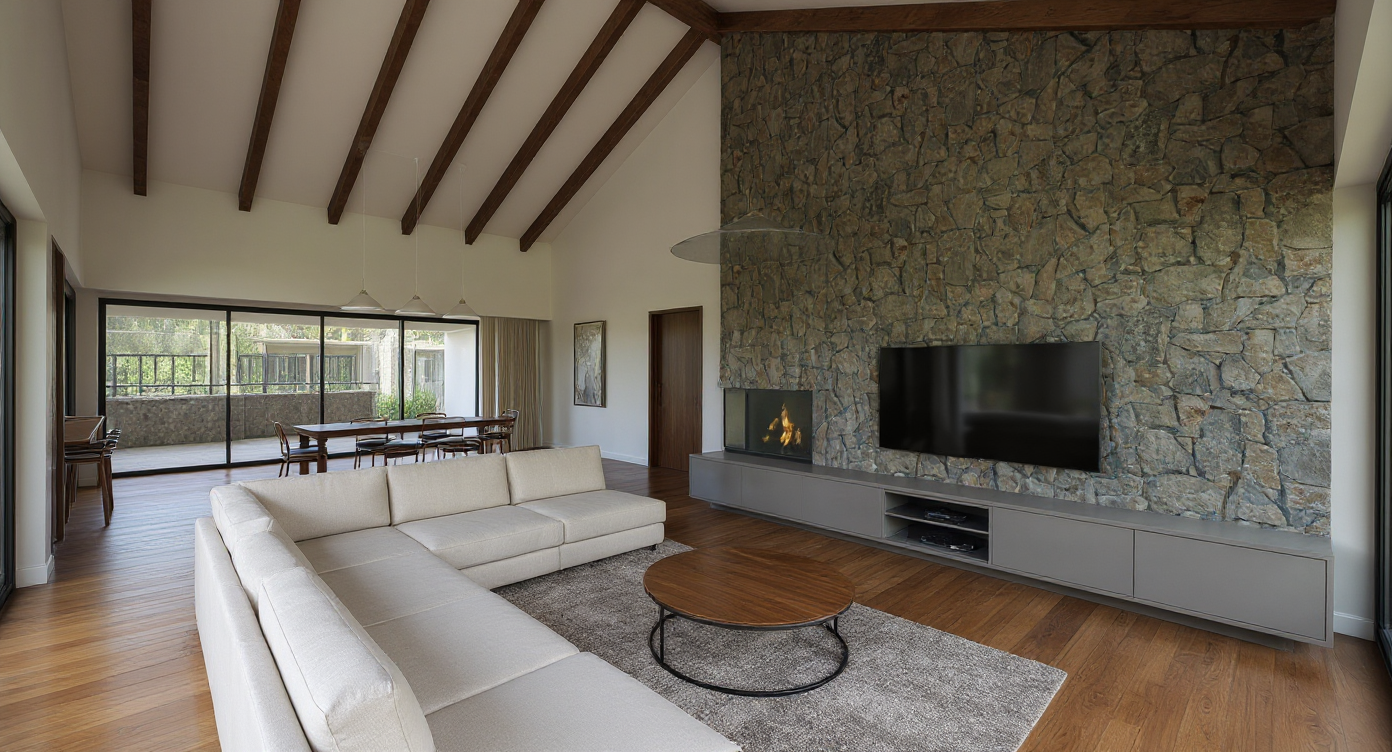 bring furnitures closer to carpet to create a circular layout remove two small wall mirrors