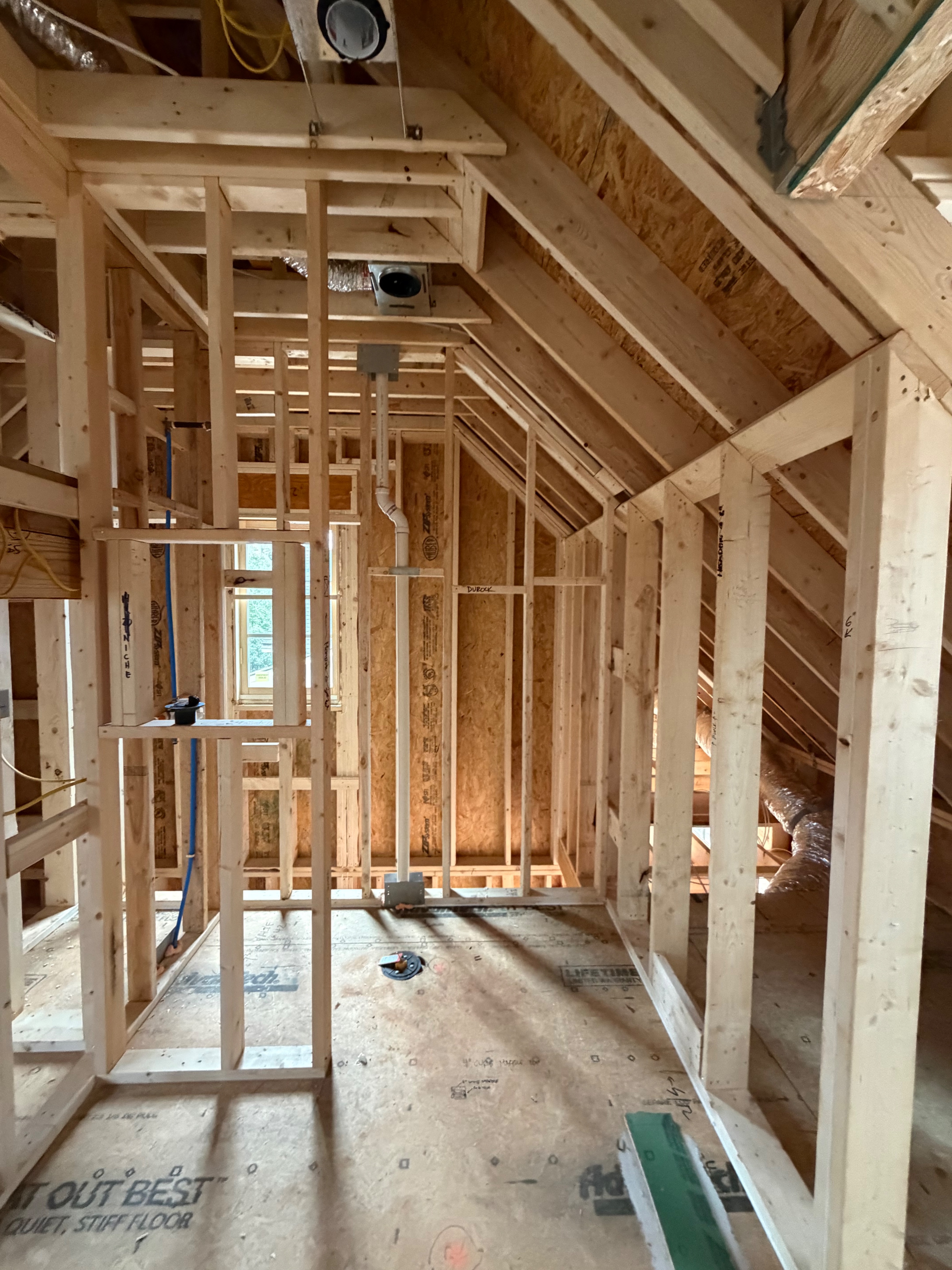 finish out space with glass shower door in opening marble 3x6 tile on shower walls and basketweave black and white marble on floor
