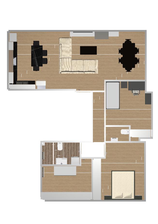 convert this floor plan into a realistic isometric 3d view of a full house show the space from an elevated angle with furniture walls and details visible create a 3d model strictly from this 2d floor plan use orthographic top down view only no perspective no tilt no rotation camera is perfectly vertical looking straight down walls must be vertical and aligned to the grid use the same furniture as shows on the plan do not change the orientation of the floorplan