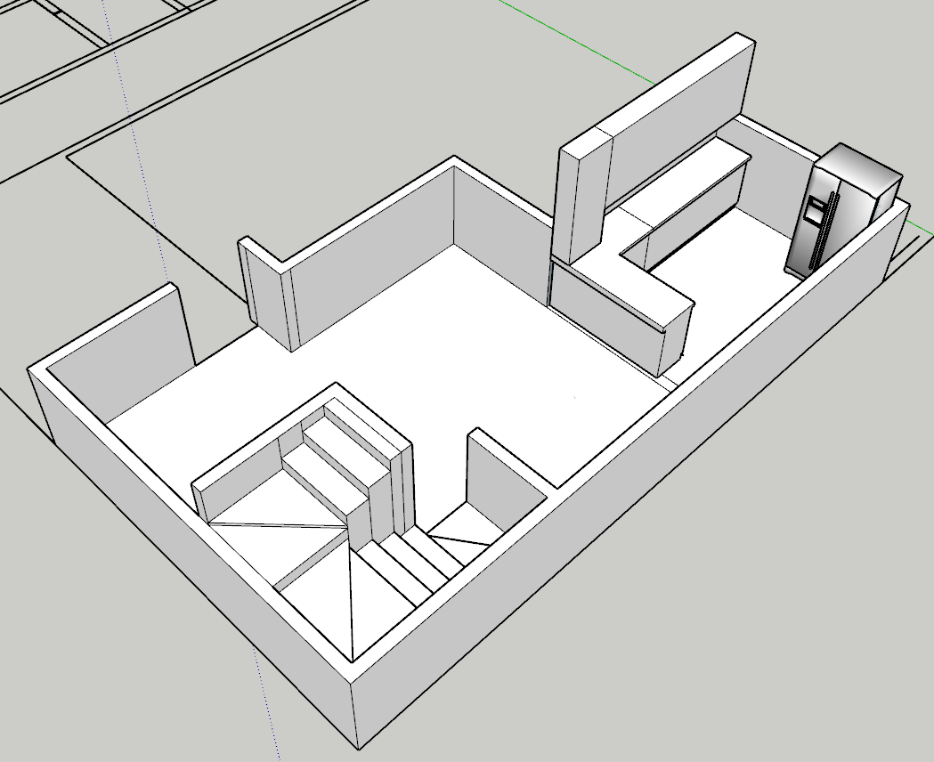 ground floor interior design isometric view no roof front living room area connected to an open concept kitchen at the back functional circulation clean layout integrated social space living room with sofa coffee table tv unit kitchen with built in refrigerator l shaped kitchen island with sink breakfast bar modern contemporary style light wood neutral colors warm lighting architectural isometric render realistic lighting premium real estate style