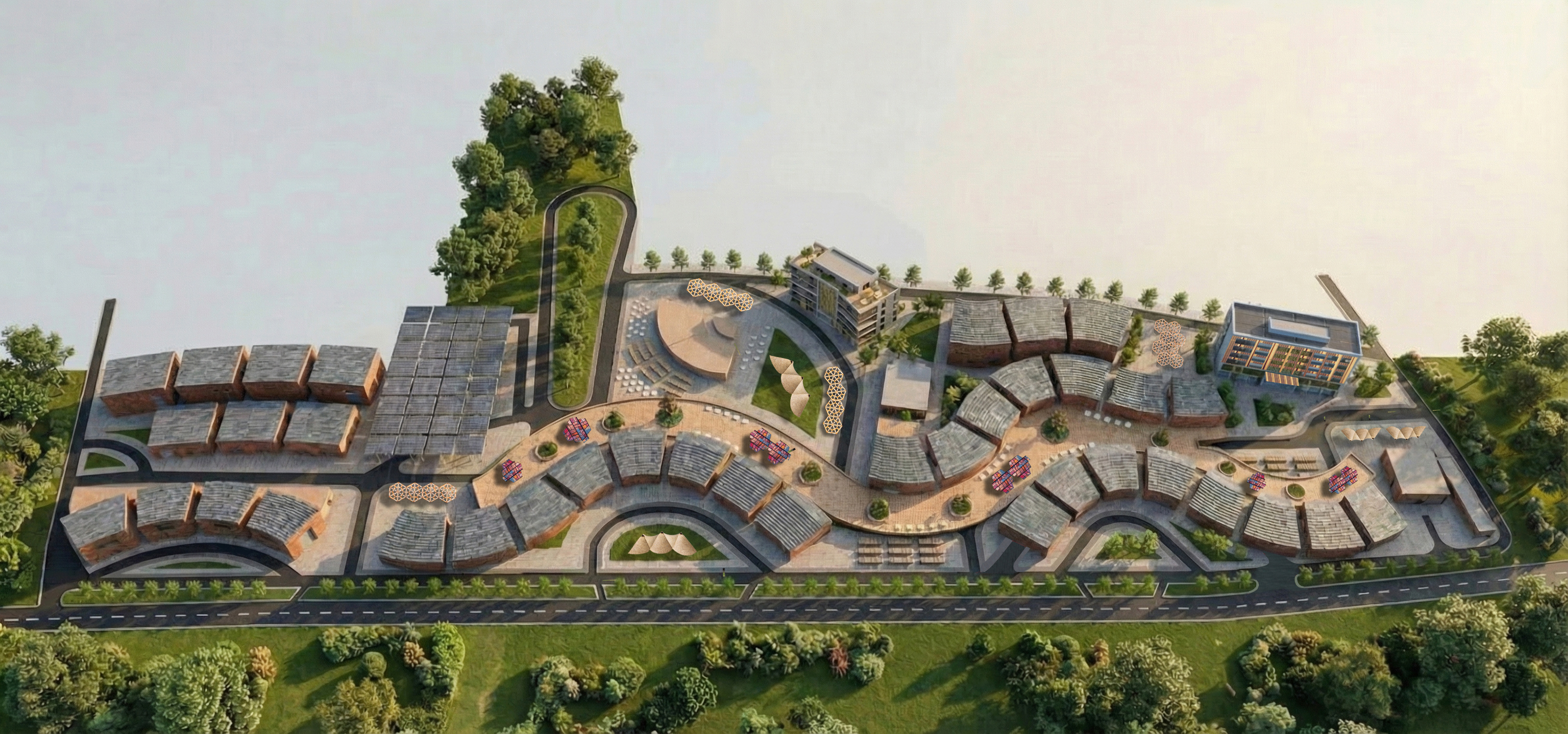 archsynth prompt add cars buses only preserve base image completely mode edit insert base image uploaded cityscape global rule critical this is a pure insertion task the base image must remain pixel identical everywhere except for the newly inserted vehicles no other modifications are allowed vehicles cars insert cars only on existing asphalt streets all streets are double lane roads scatter cars naturally along all streets cars must follow lane direction and curvature maintain realistic spacing and moderate city traffic do not place cars on sidewalks plazas green areas or buildings cars must match the scene s lighting shadows and perspective buses insert city buses only on the front main road buses must be correctly scaled and aligned with the lanes include multiple buses to indicate realistic traffic flow buses must match the scene s lighting and shadows absolute hard constraints do not add remove modify or replace any existing pixels do not add or alter people buildings pavements landscaping water or any other object do not change lighting shadows colours materials or camera perspective do not stylize enhance or reinterpret the image result the final image should be identical to the base image with only cars added along all streets and buses running on the front main road