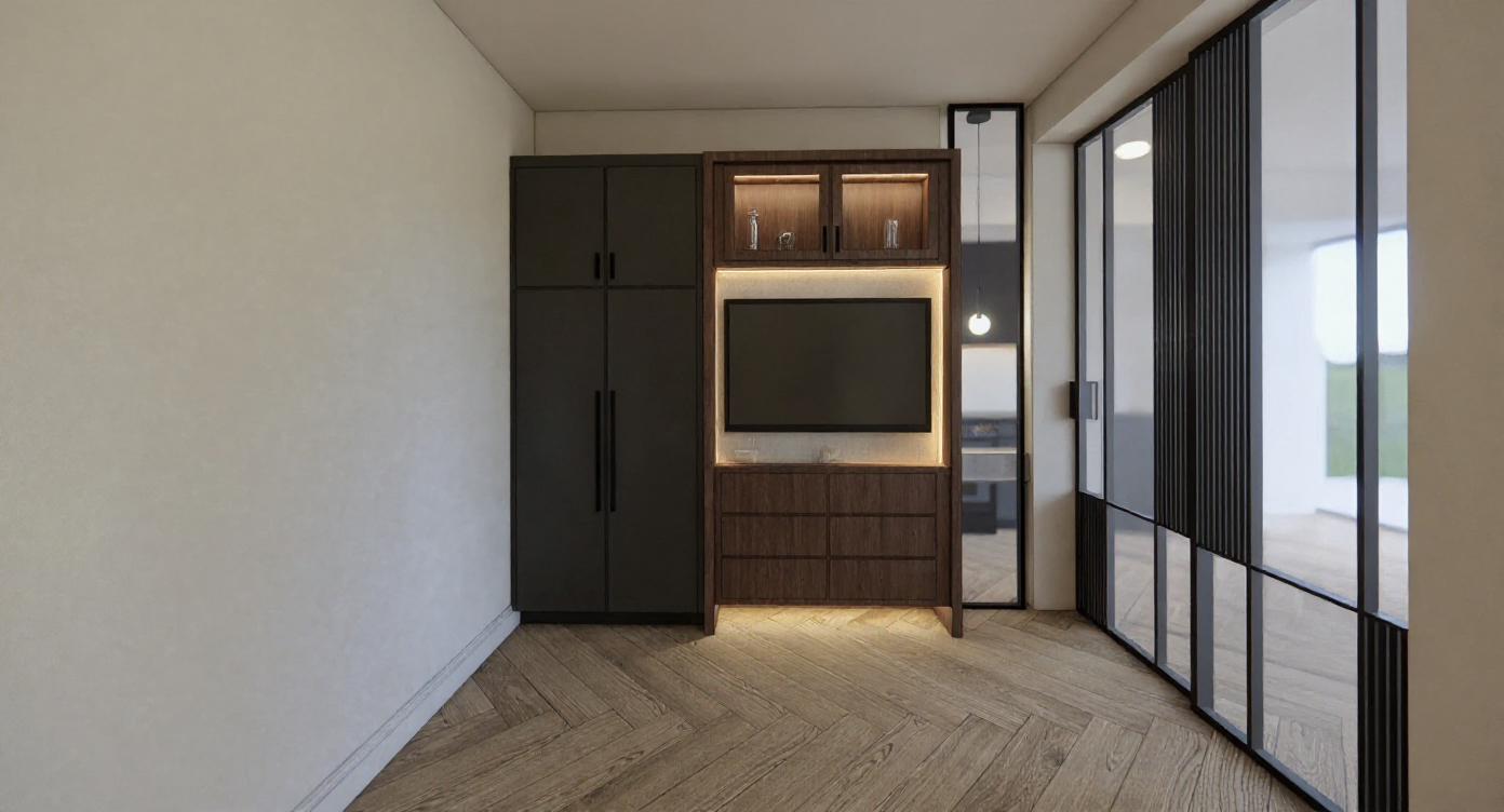 please make only the floors in my rendering a darker walnut keep everything else including lighting materials and colors exactly the same do not alter the design reflections or any other parts of the image