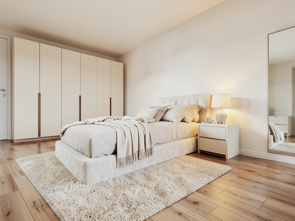 cozy soft colors oak laminate floor no led lights luxury exclusive bedroom for a girl with neutral tones add white bambus curtains add soft textured rug a little soft colors keep original nodes