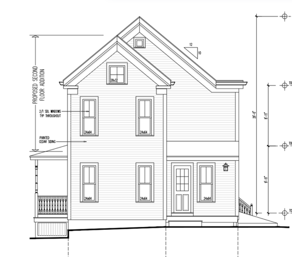 please paint the wood clapboard siding to light pewter by ben moore and the trim white dove by ben moore please add black roof tiles to the home