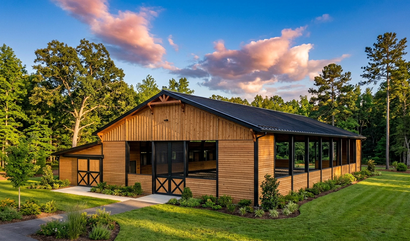 white panel siding black fascia woodtone bellyband door is glass with black trim wood soffit