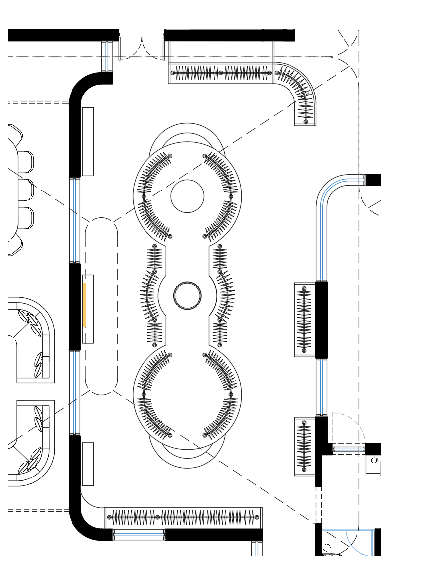 convert this floor plan into a realistic isometric 3d view of a full house show the space from an elevated angle with furniture walls and details visible create an immersive 3d interior rendering not a plan view and not a top down view show an eye level or slightly elevated human perspective inside a wide luxurious dressing room with very high ceilings and large full height windows on both long sides flooded with soft natural daylight the architecture is minimal neutral and luminous acting only as a gallery container at the center of the room place a freestanding sculptural catwalk island slightly elevated composed of three connected curved volumes forming a fluid figure eight shape designed as a couture display the central island features curved hanging rails with visible high end garments elegant spacing and integrated low shoe storage subtly concealed at the base around the perimeter add freestanding curved wardrobe pods and display walls partially open and partially enclosed with visible hanging couture garments refined materials and integrated warm lighting integrate very large vertical mirrors between hanging zones and behind garments reflecting light clothes and movement creating a fashion show and fitting room atmosphere focus strongly on millwork craftsmanship fabric lined interiors satin metal hanging rails garment texture and reflections the mood is ultra luxury feminine serene and powerful inspired by a billionaire fashion model s private couture gallery modern but timeless museum like yet intimate no plan views no diagrams no top down compositions no empty racks emphasize depth height light mirrors and couture garments in a realistic editorial interior photography style use the same furniture as shows on the plan do not change the orientation of the floorplan