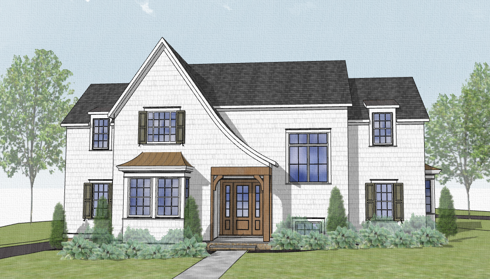 fall warm white shingle siding with full bright landscaping