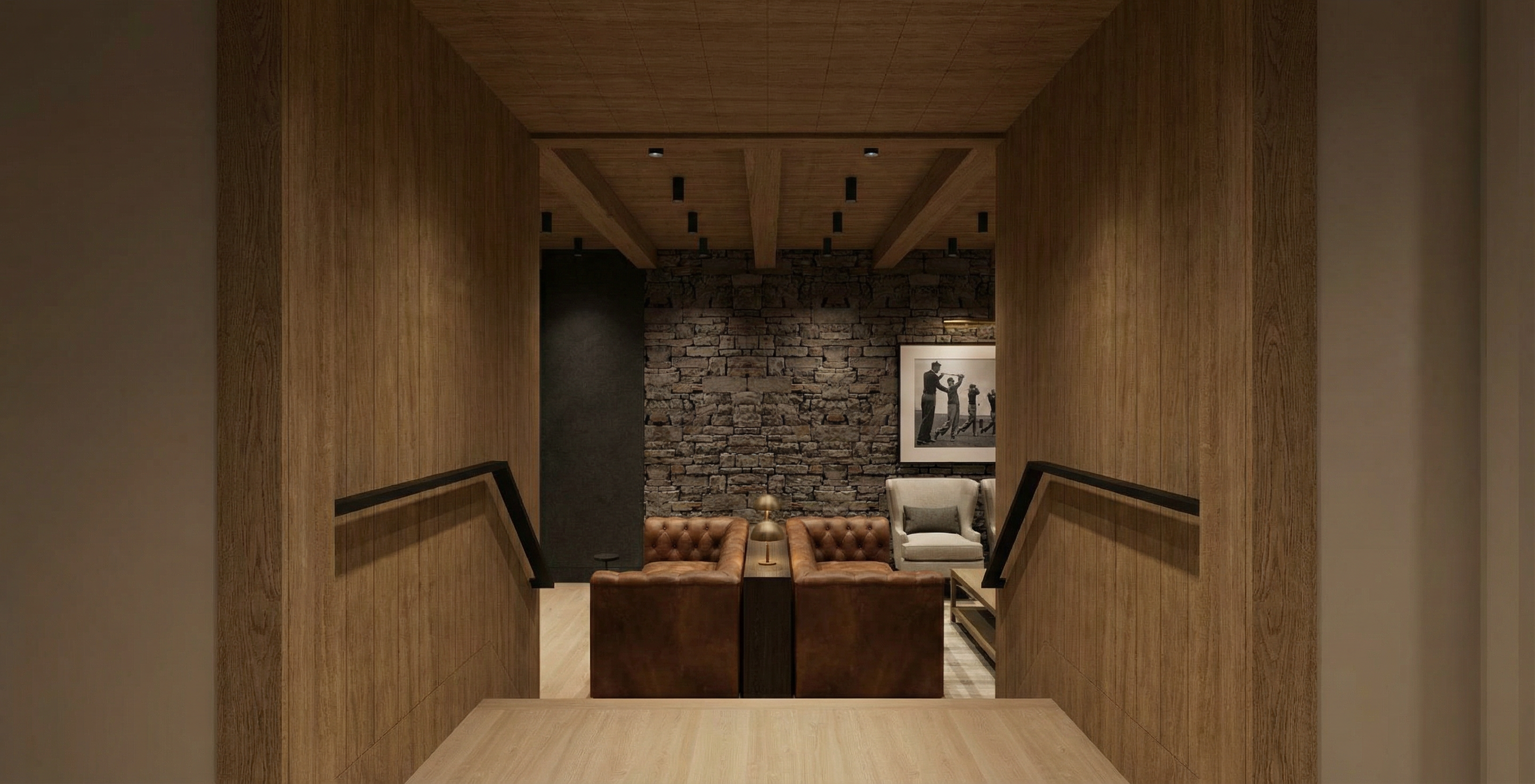 do not change any finishes or materials do not change any furniture add decor artwork and lighting add people recessed lighting