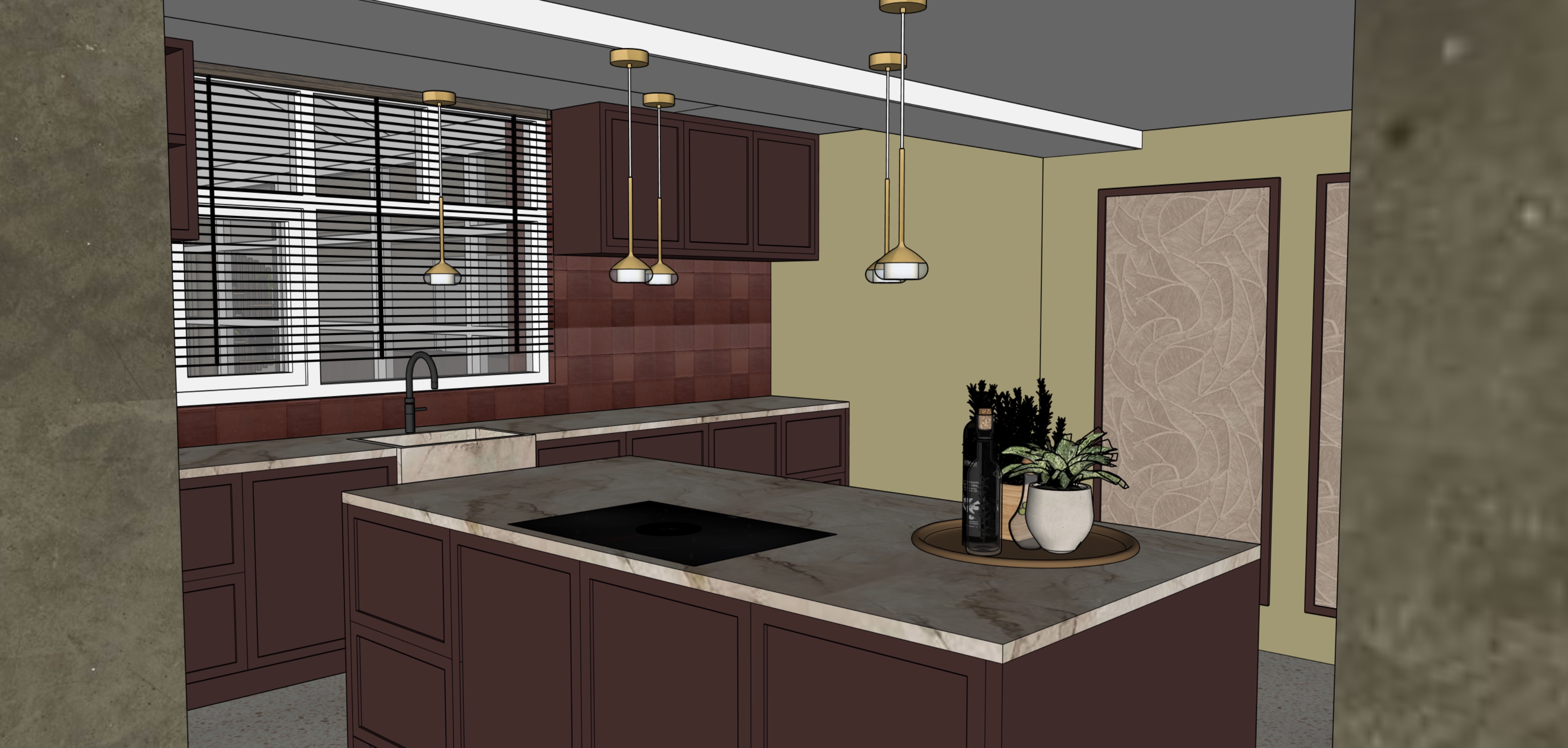 make a photo realistic render of this 3d model add natural lighting from the window and lights make it a bit warm and cozy and moody