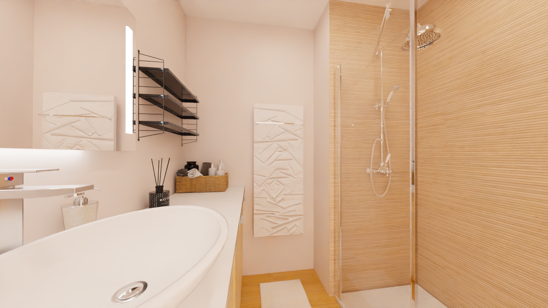 transforme ce rendu en dessin au feutre maintient le rose pale au mur