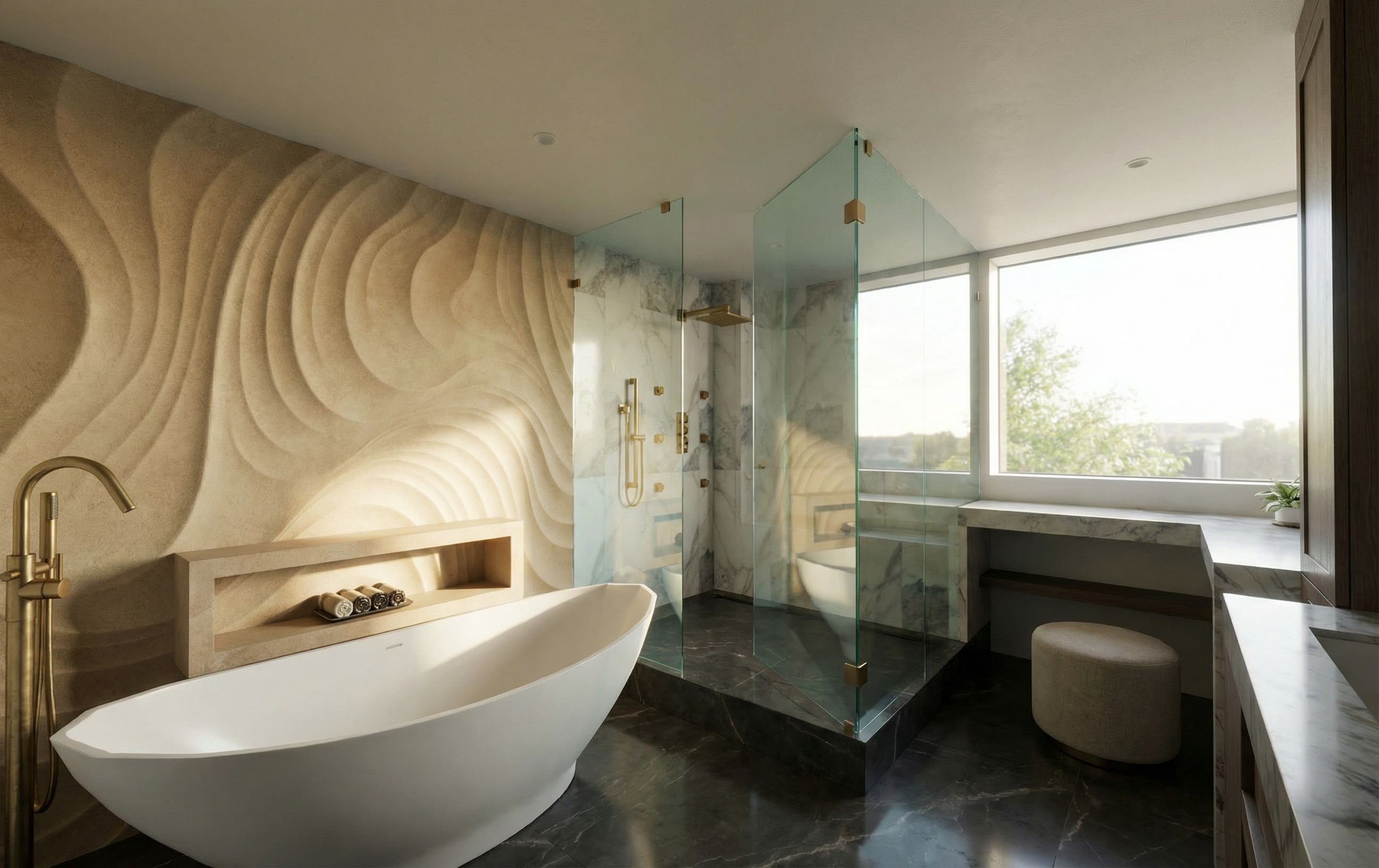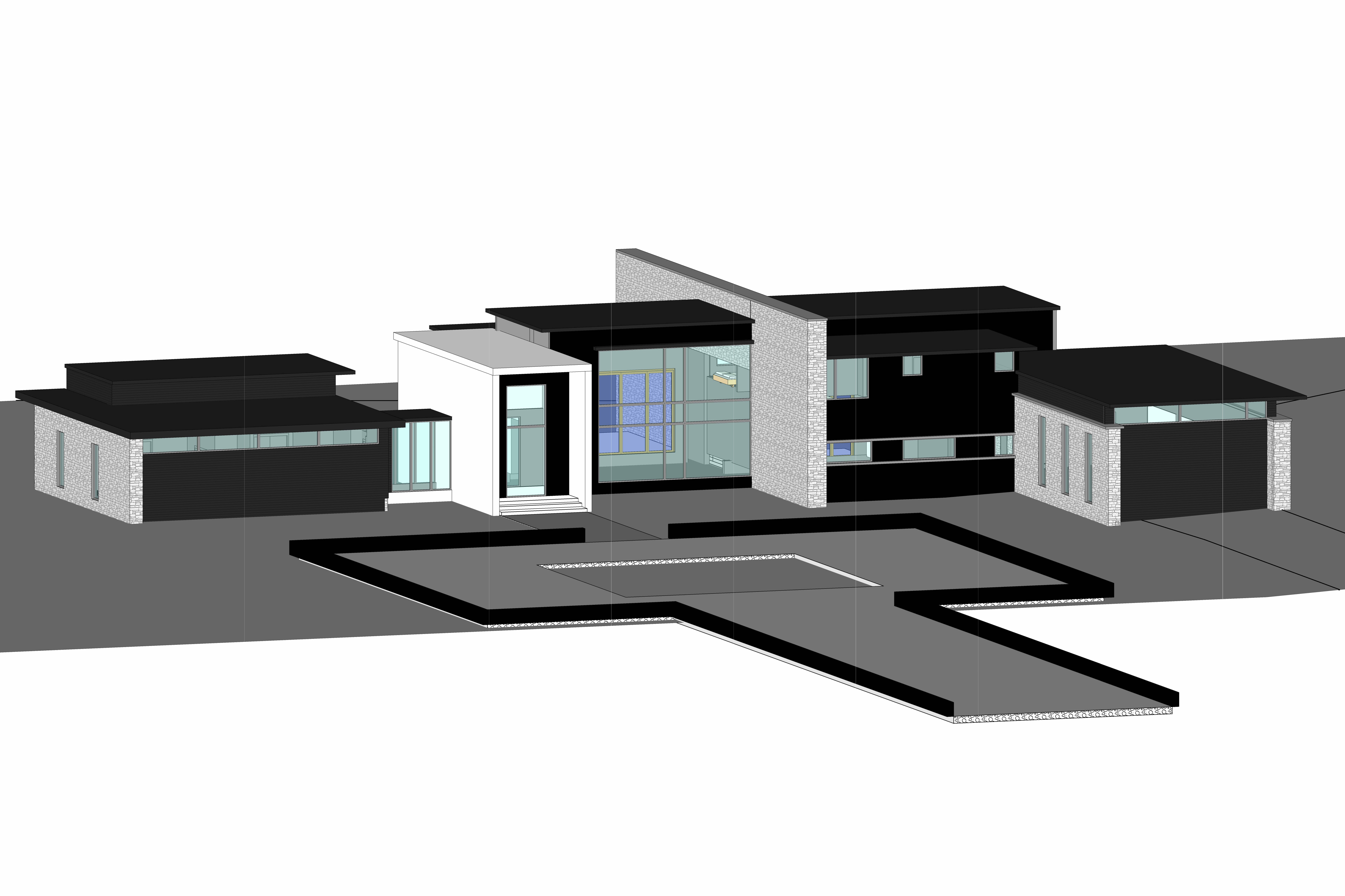modern house in the woods black brick motor court with asphalt and ferrari car exterior lighting black horizontal siding stone facade white elements modern landscape full glass front door