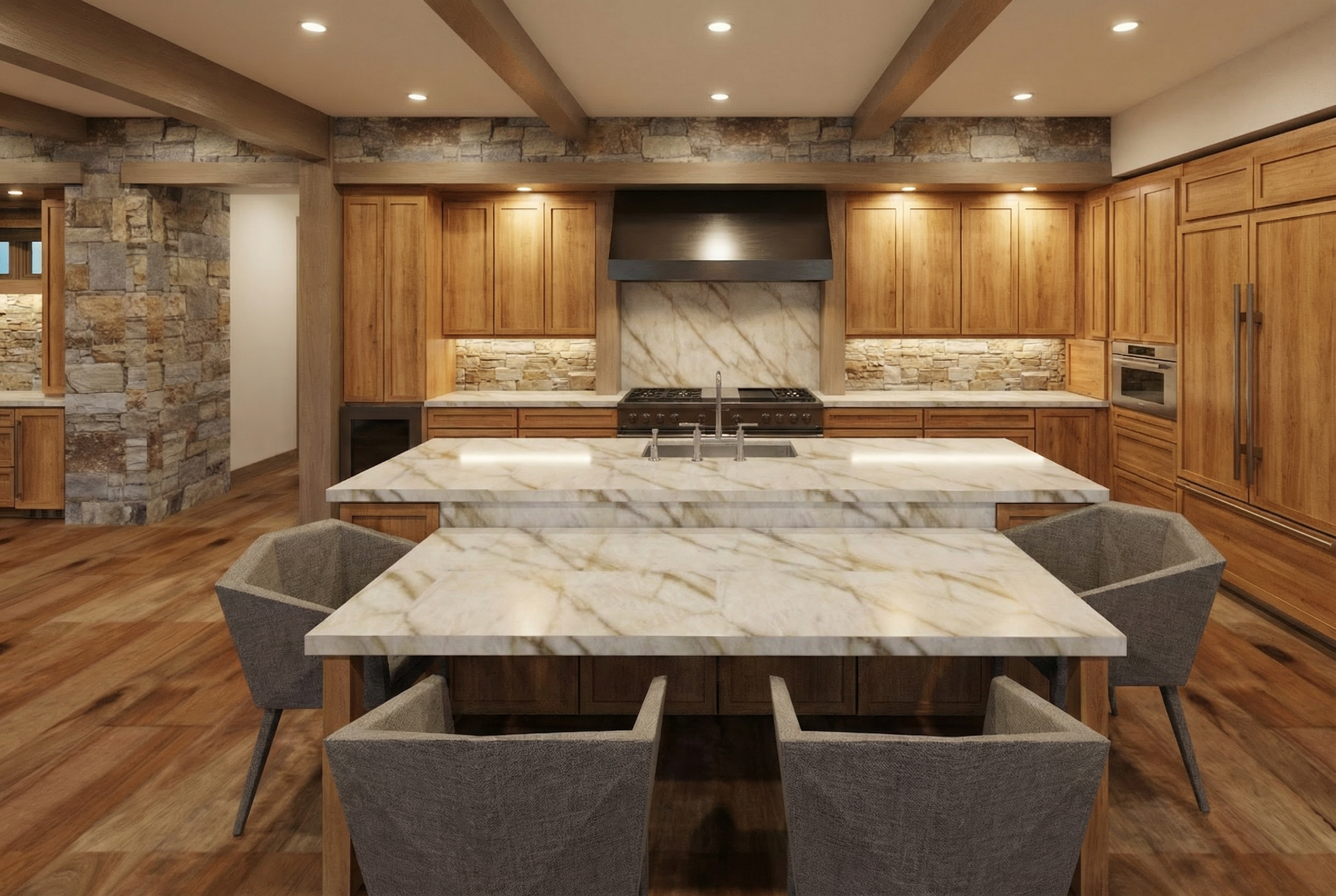 photorealistic aerial urban rendering based on the provided massing model preserve exactly the original layout building footprints circulation paths and proportions light grey areas represent pedestrian pavement and sidewalks with smooth concrete texture green areas are landscaped parks and gardens with dense native vegetation from nagaland india including subtropical trees bamboo clusters shrubs and lush ground cover the light brown elevated walkway is a wooden deck pedestrian bridge elevated 4 meters above ground level with visible structural supports and warm natural wood texture organic contemporary architecture with soft curves and stepped volumes natural daylight tropical climate realistic shadows high material realism no changes to geometry no additional buildings no alteration of green vs paved areas ultra detailed realistic materials architectural visualization quality