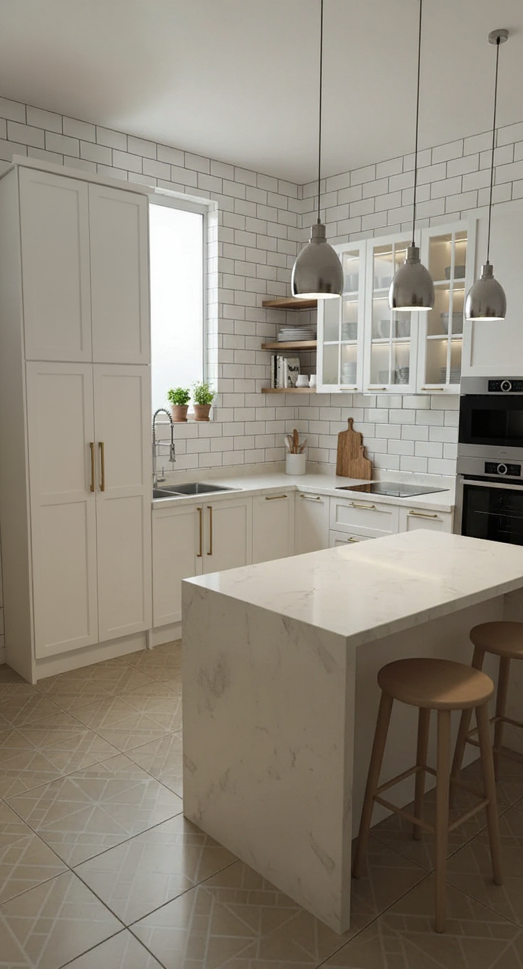 replace the refrigerator to a a fulll height floor to ceiling cabinet respect the cabinets besides and just change de refrigerator