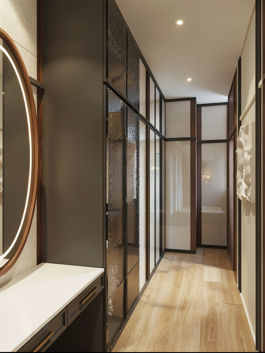 buat gambar ultra realistis tanpa mengubah struktur bentuk desain atau material apa pun jangan mengubah ukuran jpeg mundurkan kaca agar terapit frame pintu