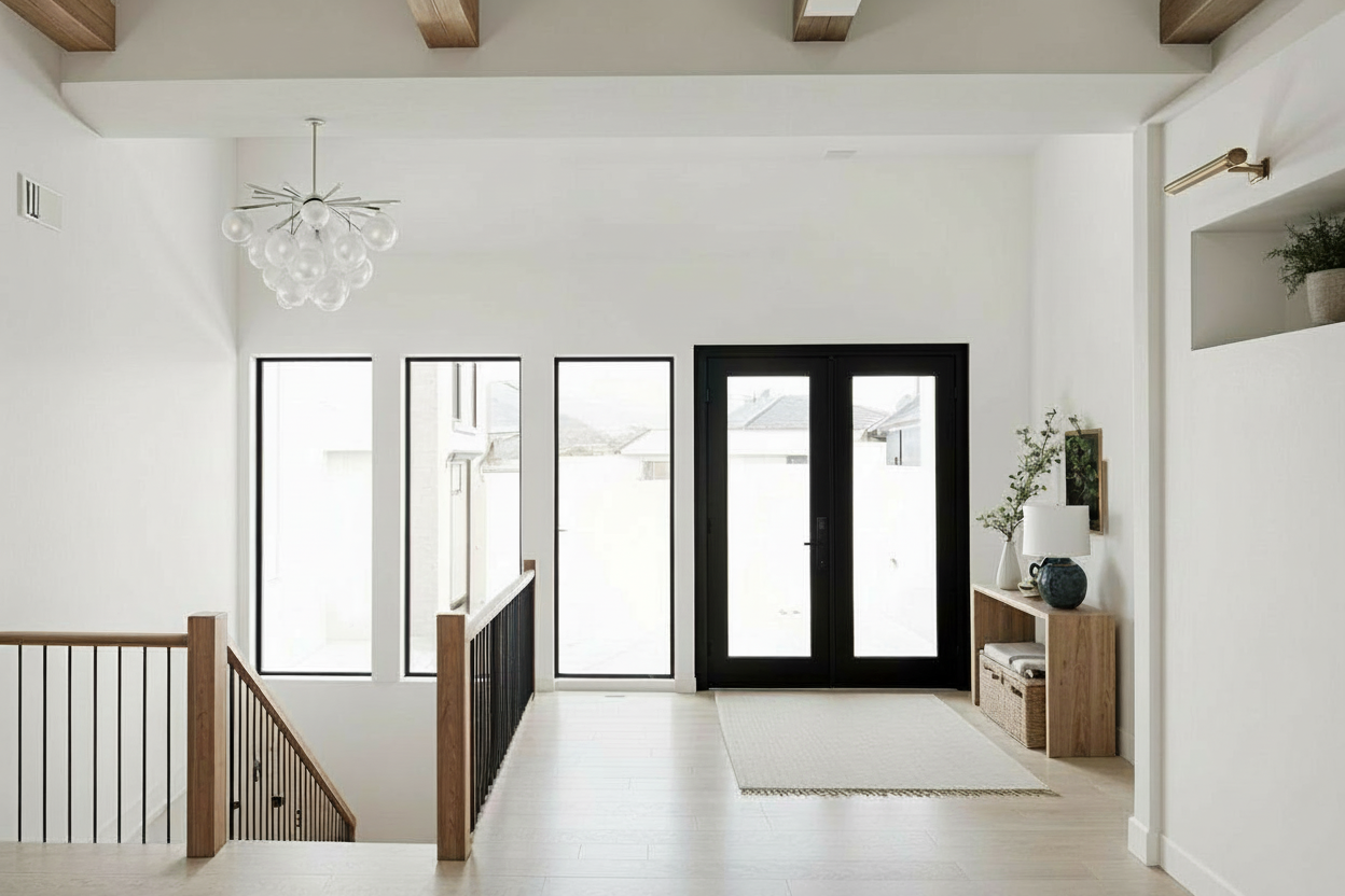 change to single door and white windows