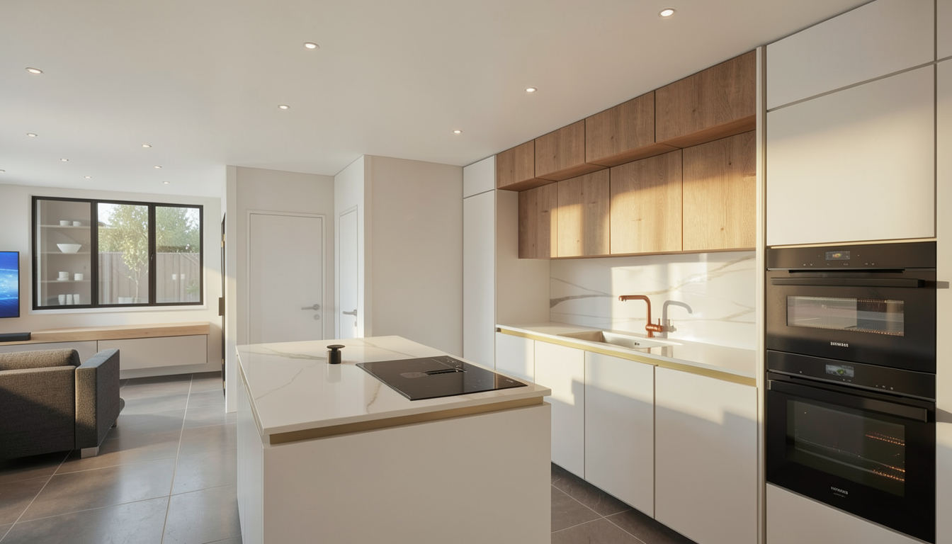 make a photorealistic image with great details of the modernist house realistic stone wall use the details textures and colors from the photo do not change the architecture colors and materials of the house add water to the pool in front add greenery typical of the island of kefalonia olive trees and other suitable trees but not too much in the distance behind the house add semi desert hills typical of the island of kefalonia keep the grass around the house low like freshly mown put strong afternoon sunlight add light architectural lighting on the walls of the house coming from small black floor spotlights on the outer perimeter of the house do not change anything on the interior of the house through the windows of the house make the windows realistic reflective do not change the facade and materials of the entire architecture make the image in 4k