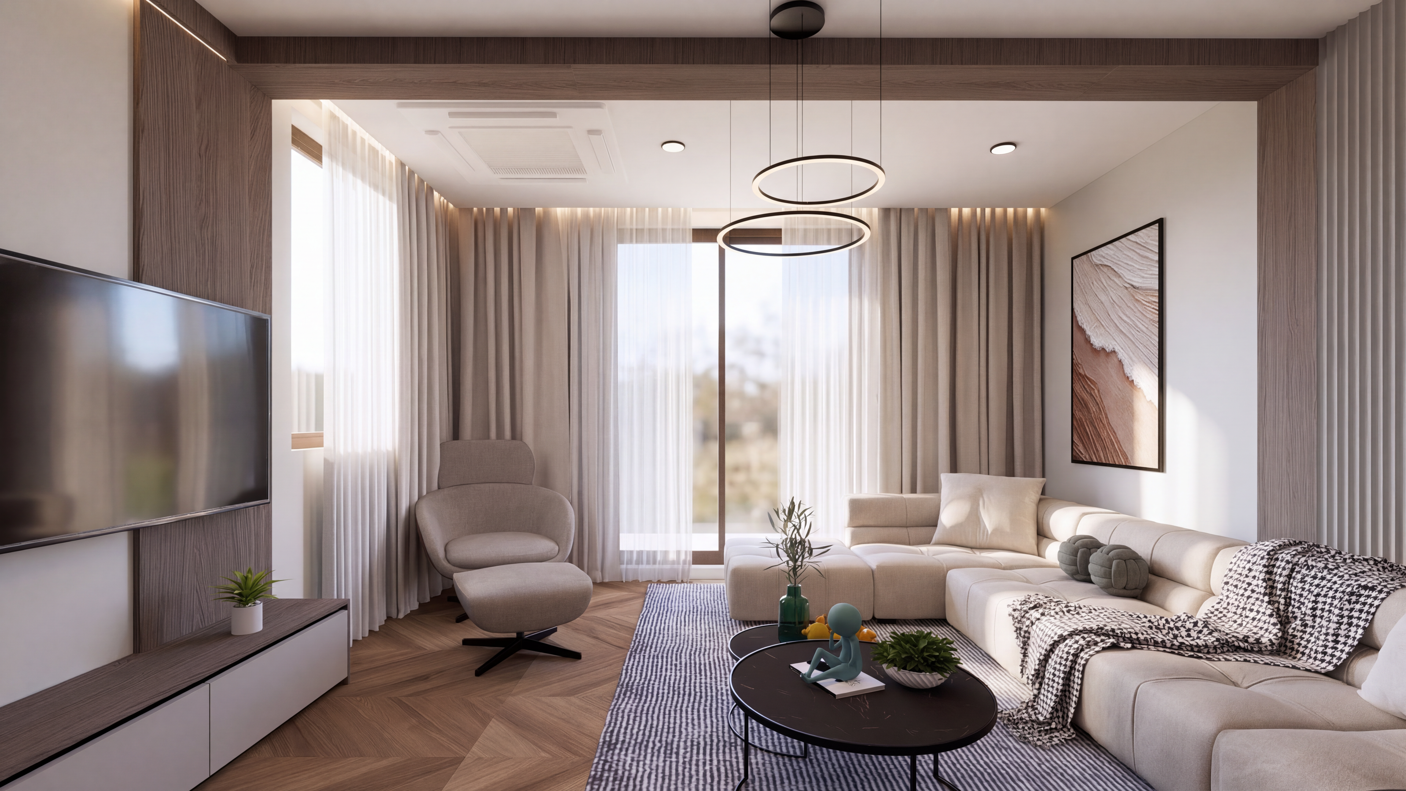 turn this into a realistic rendering please make the door black please match the door style