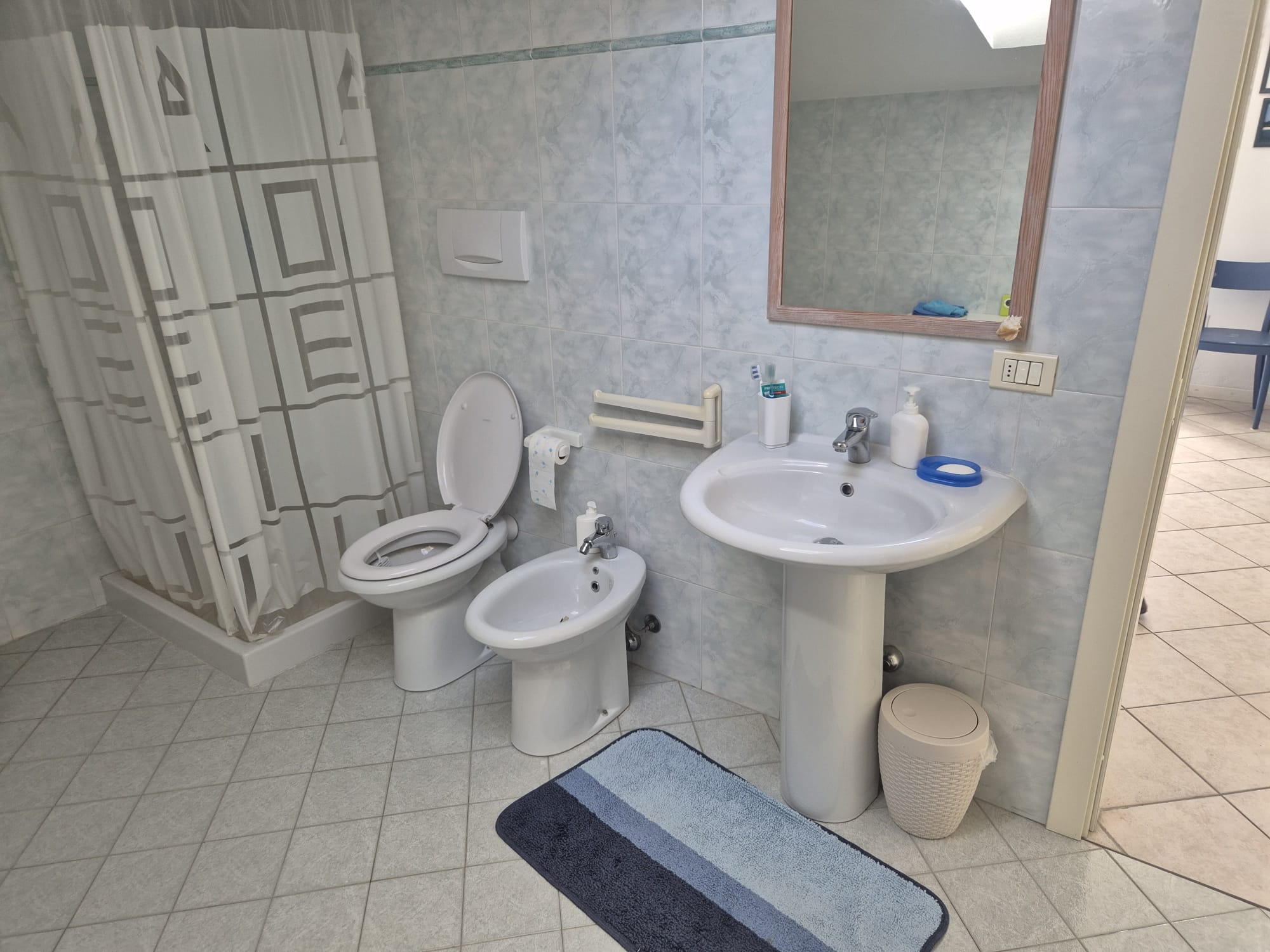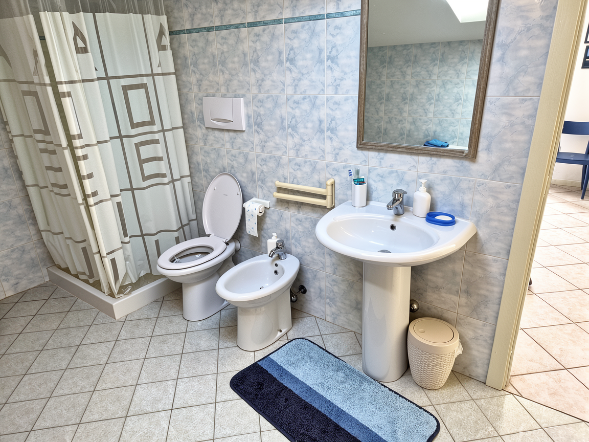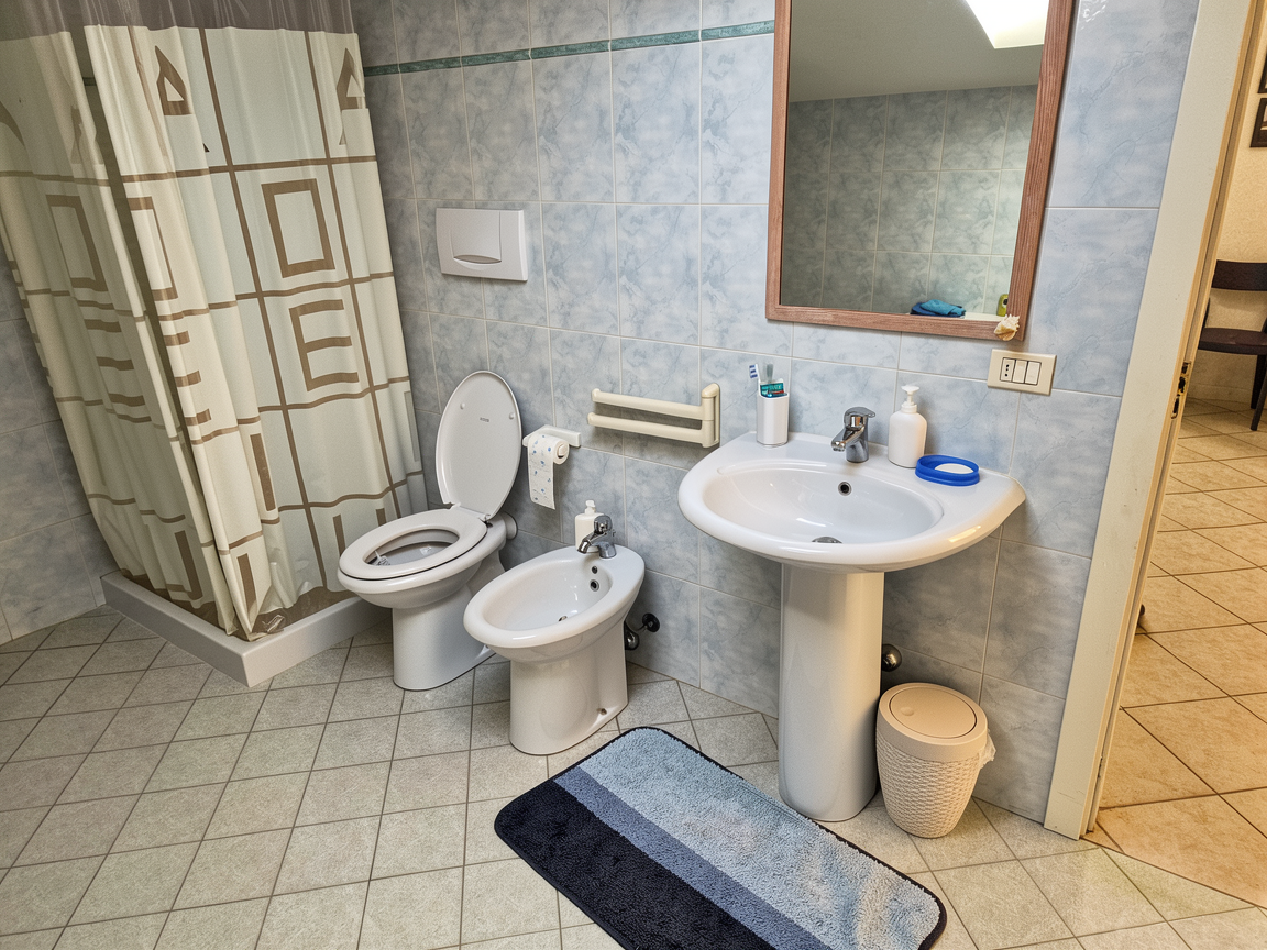 nel corridoio che si intravede a destra metti un mobiletto da bagno