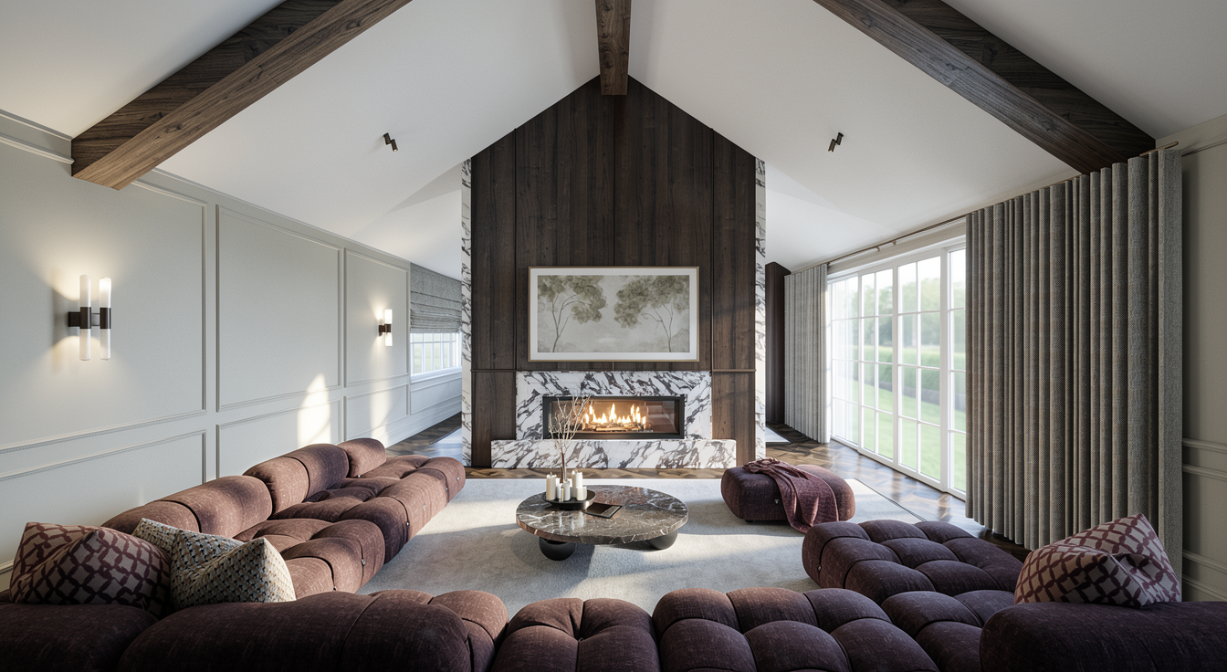 a modern restaurant terrace with a pergola for events modern design of chairs and tables that are set up for a elegant events elegand floral arrangements creating an atmosphere that is both sophisticated and romantic the tables are round and oval and are set for guests complete with gold candlesticks white plates silverware pink and cream colored tablecloths exquisite centerpieces and delicate accents like vintage crystal chandeliers hanging from above the chairs are decorated and have a cover mesh that matches the white and beige collor pallete on the right there are glass walls with neutral tones luxury draped fabric hanging beige chandeliers from the beams with white crystal pieces light up the room with warm light and soft shadows from beams there are also smaller chandeliers hanging from the beams with beige fabric that light up the room with warm light and soft shadows from large windows on right hand sides of room green plants behind glass walls the floor is natural dark hardwood the pergola pillars and beams are light beige ral 1014 color code the pergola slats are also light beige ral 1014 color code pergola slats have led bands the terrain and the ground around is a lake area with greenery and grass specific for this kind of area there is a lake in the background on the farleft with a pontoon at the end of the terrace the sky is blue with a few white clouds the sunlight is warm and casts soft shadows there are decorative elements all around and green plants to make it look more realistic format picture 16 9 extradetailed and ultrarealistic interior all elements have sharp details add realistic imperfections subtle fabric wrinkles slight surface reflections natural daylight with soft shadows