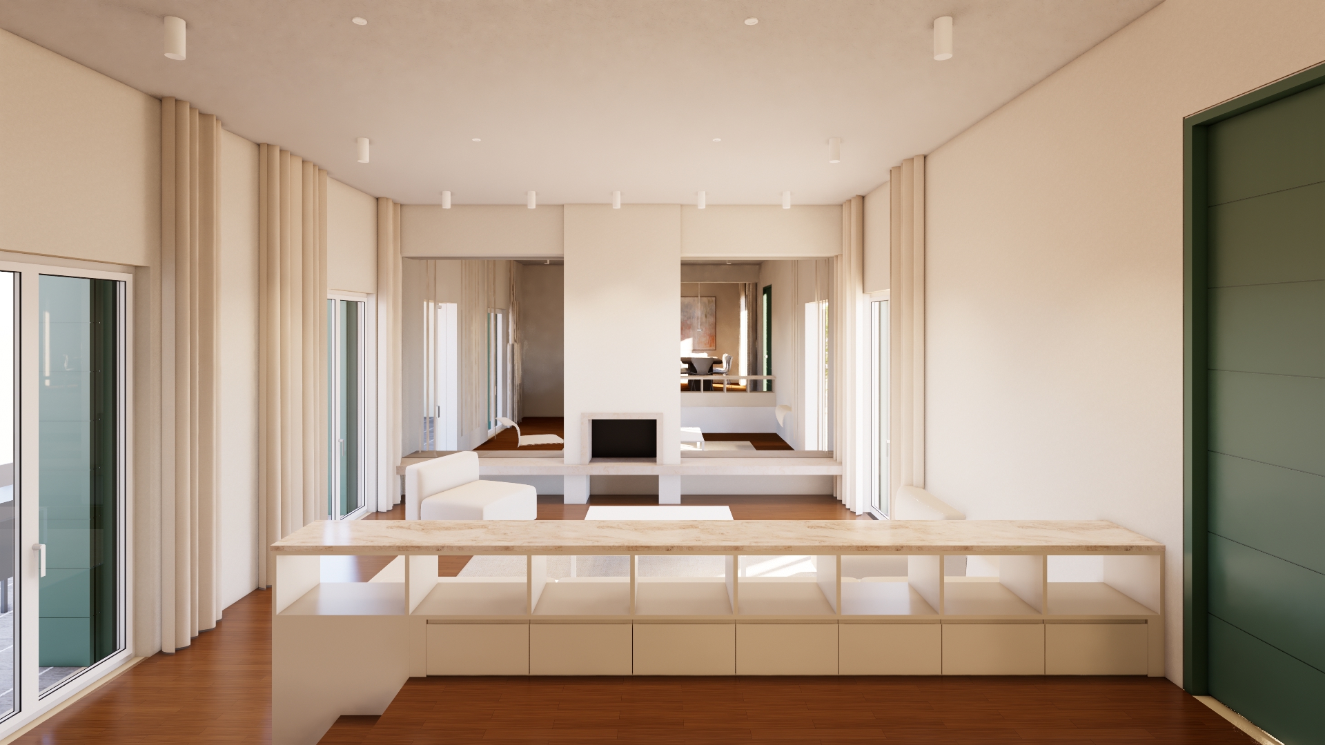 light grey sofa colored armchair add some paintings keep the mirror with a detailed hidden tv at the back add some decorative accessories