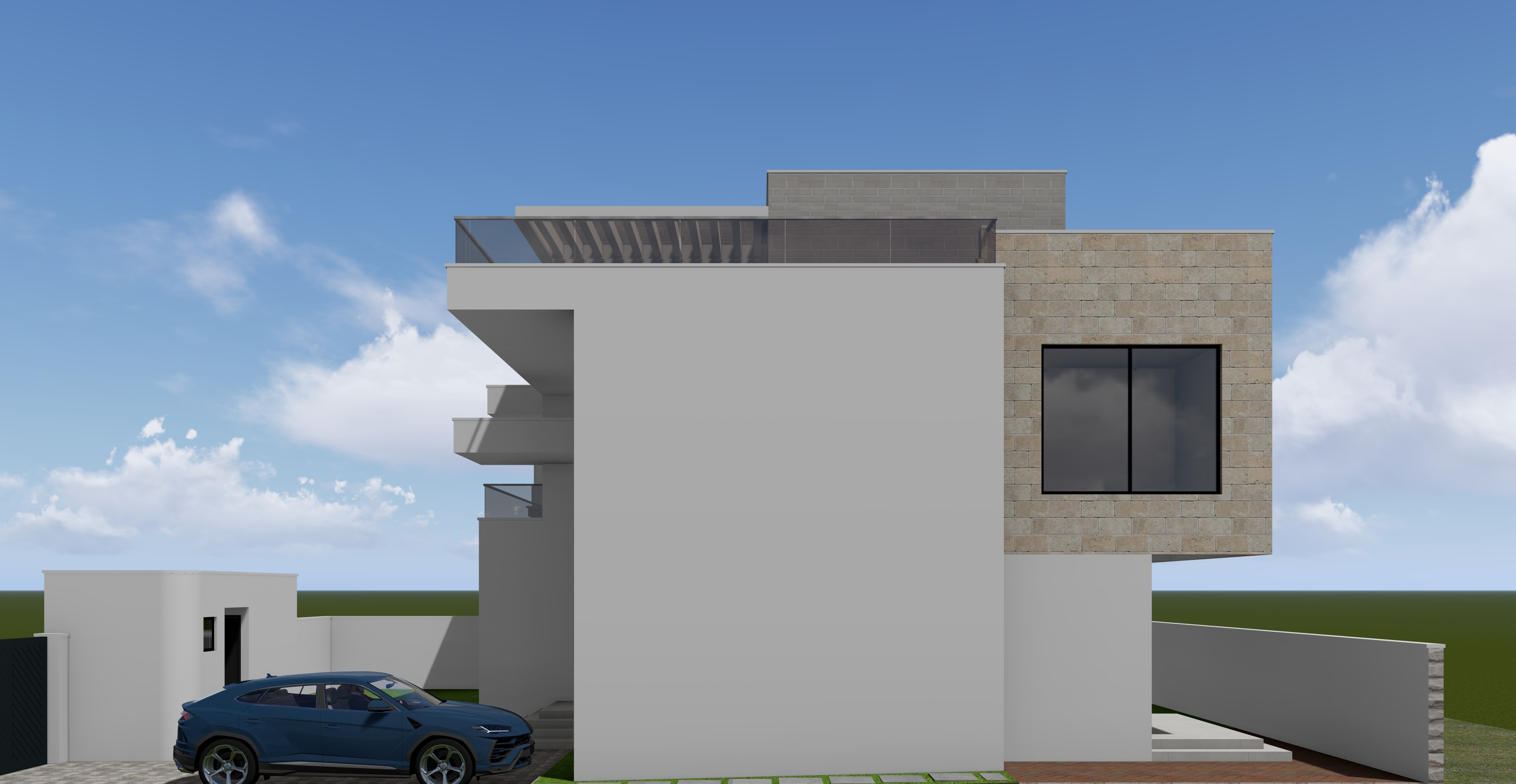 add very few trees and vegetation in background to give it context make house look lived in