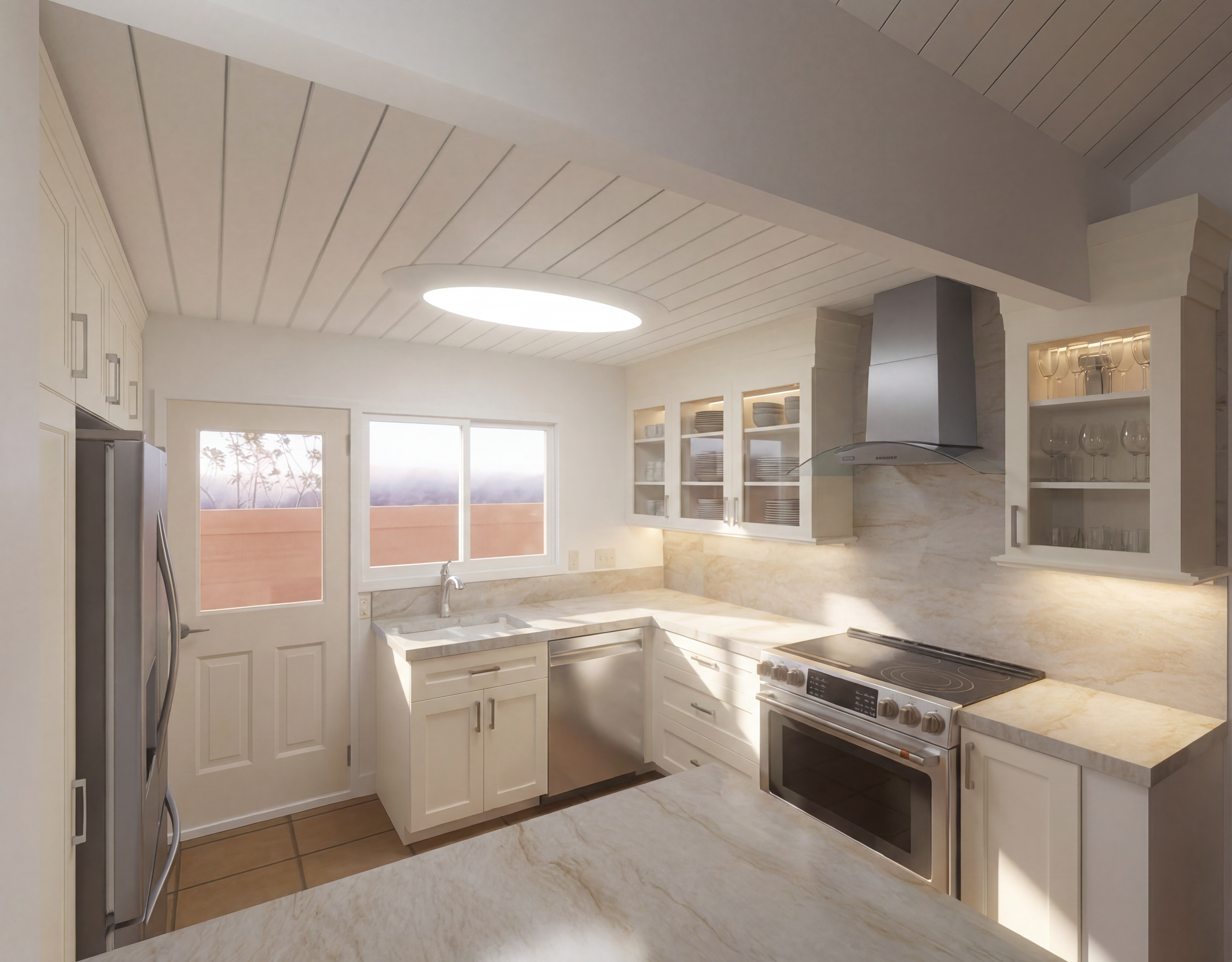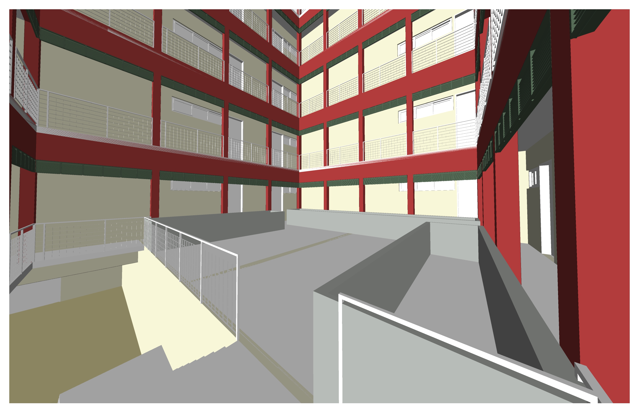 interior architectural space identical to the reference design preserving exact composition perspective proportions and respecting the original architecture clean minimalist layout with natural materials and open spatial flow introduce natural lighting coming from an interior patio allowing soft daylight to filter into the space creating subtle shadows and a calm atmosphere include a terrace connected to the interior enhancing the indoor outdoor relationship add vegetation on balconies with tropical plants and cascading greenery visible from the interior enriching the spatial experience without altering the structure maintain materiality and architectural integrity with emphasis on light shadow and spatial continuity ultra realistic architectural render highly detailed materials 4k cinematic composition no people no furniture if not originally present