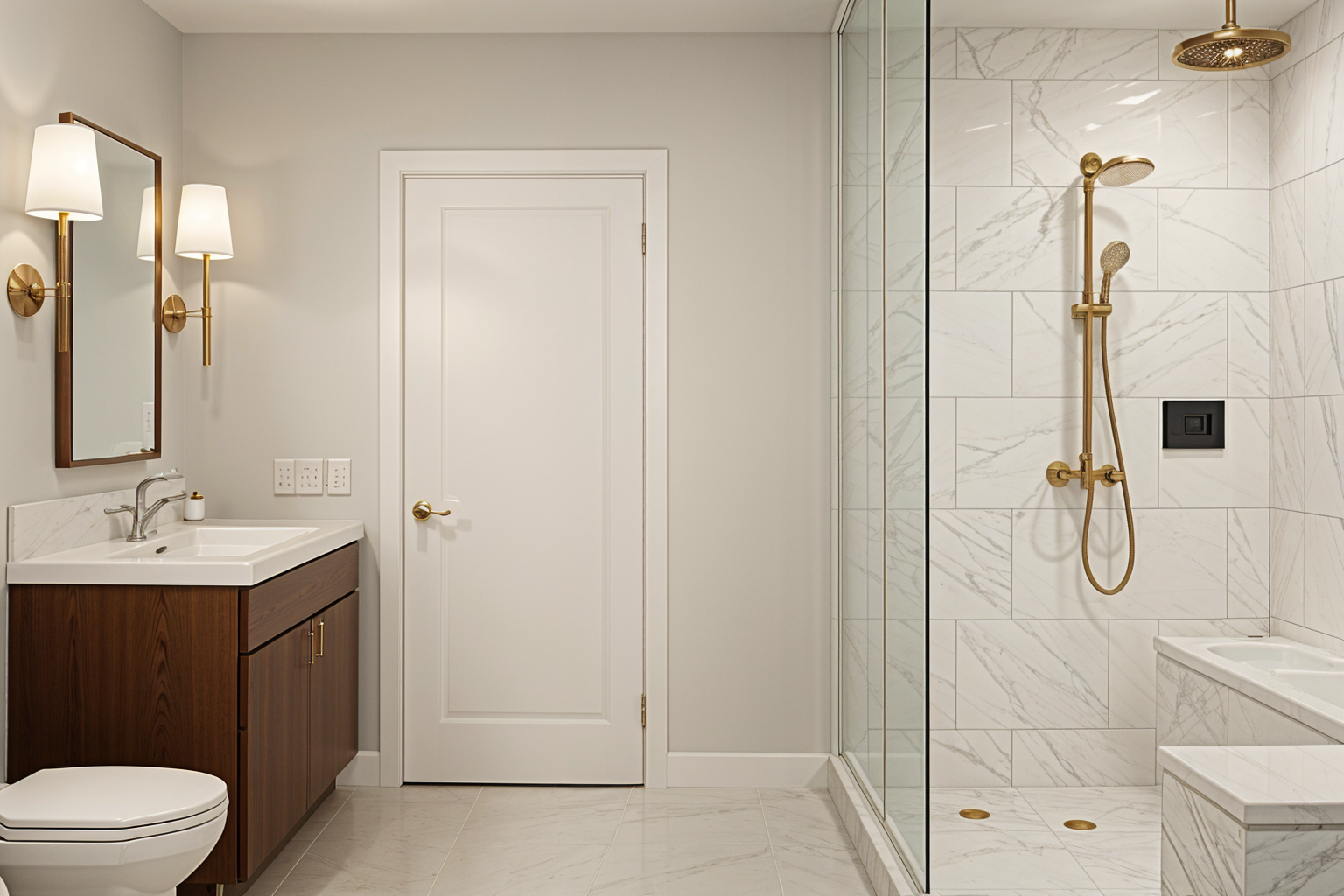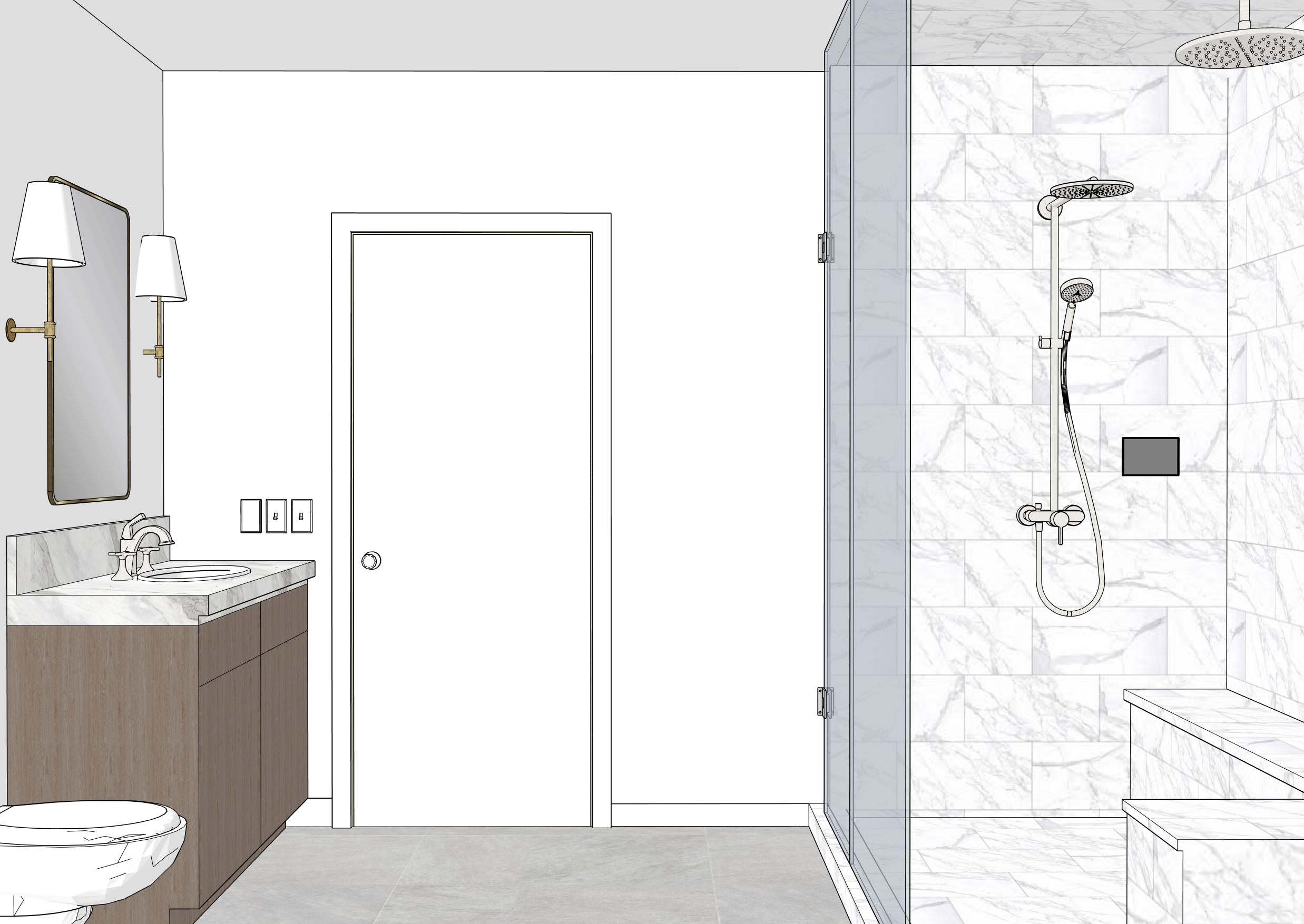 wide angle shot make it a modern steam room make all fixtures silver