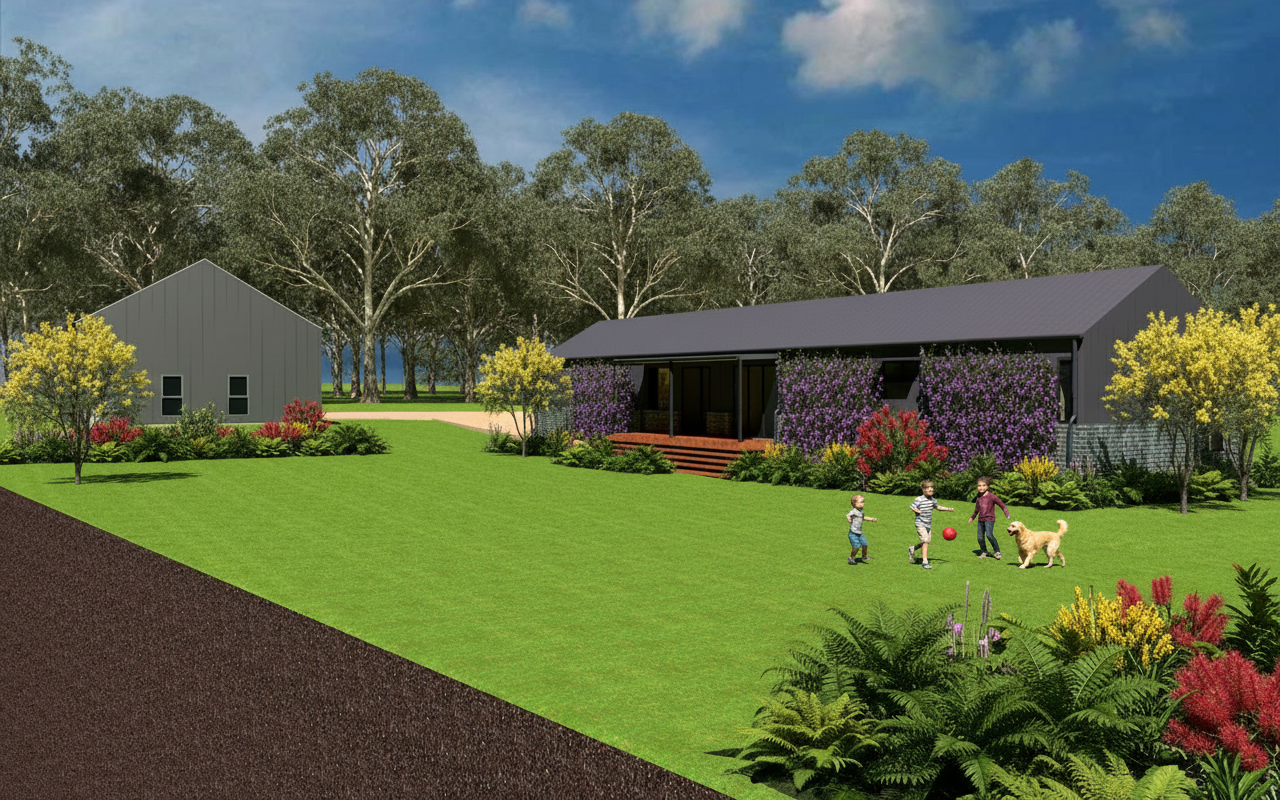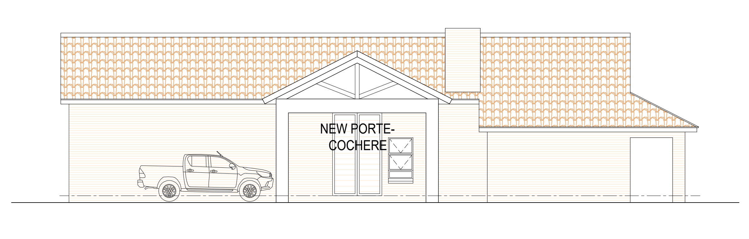 contemporary dark brown facebrick entertainment area with spanish tile roof