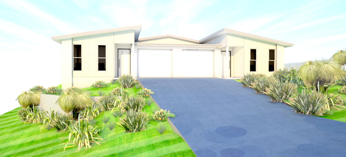 render a photorealistic 3d perspective of this house in cairns queensland australia reference the current material style just enhance them keep model geometry the same windows doors roof walls sidings posts garage door pavement driveway make a lush vegetation that looks native to cairns do not change the view only enhance the current materials and make the landscape nicer vegetation detailed textures in the fibre cement siding and glass less reflection and a vibrant clear sky with light atmospheric depth render in hyper realistic architectural visualization quality 8k resolution