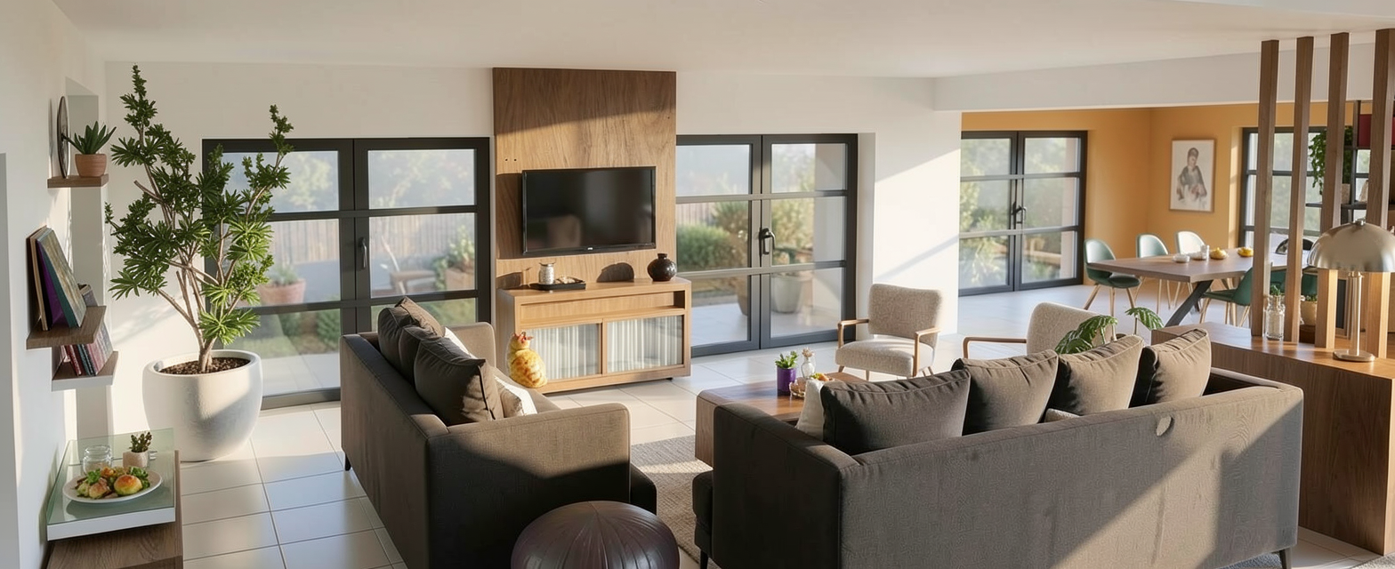 please add this window treatment to the open window shown in original image as well as the pink lamp on the side table