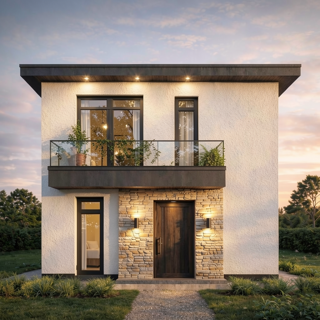 transform this modern outdoor caf patio with a mediterranean spanish vibe add a large fabric awning attached to the glass fa ade featuring bold red and white vertical stripes slightly soft and flowing introduce elegant red umbrellas with subtle white embroidered edges evenly distributed across the seating area replace existing chairs with black metal frame chairs combined with warm wood elements styled with red and white striped cushions add small round caf tables with dark metal bases and light stone or wood tops enhance the floor with textured natural stone tiles in warm grey beige tones slightly irregular for an authentic feel include lush greenery in terracotta pots climbing plants near the fa ade and soft shadows for a warm afternoon ambiance lighting is soft mediterranean sun realistic high end architectural visualization ultra detailed 4k natural materials cozy yet refined atmosphere