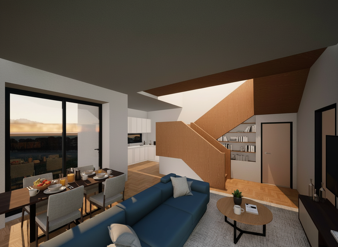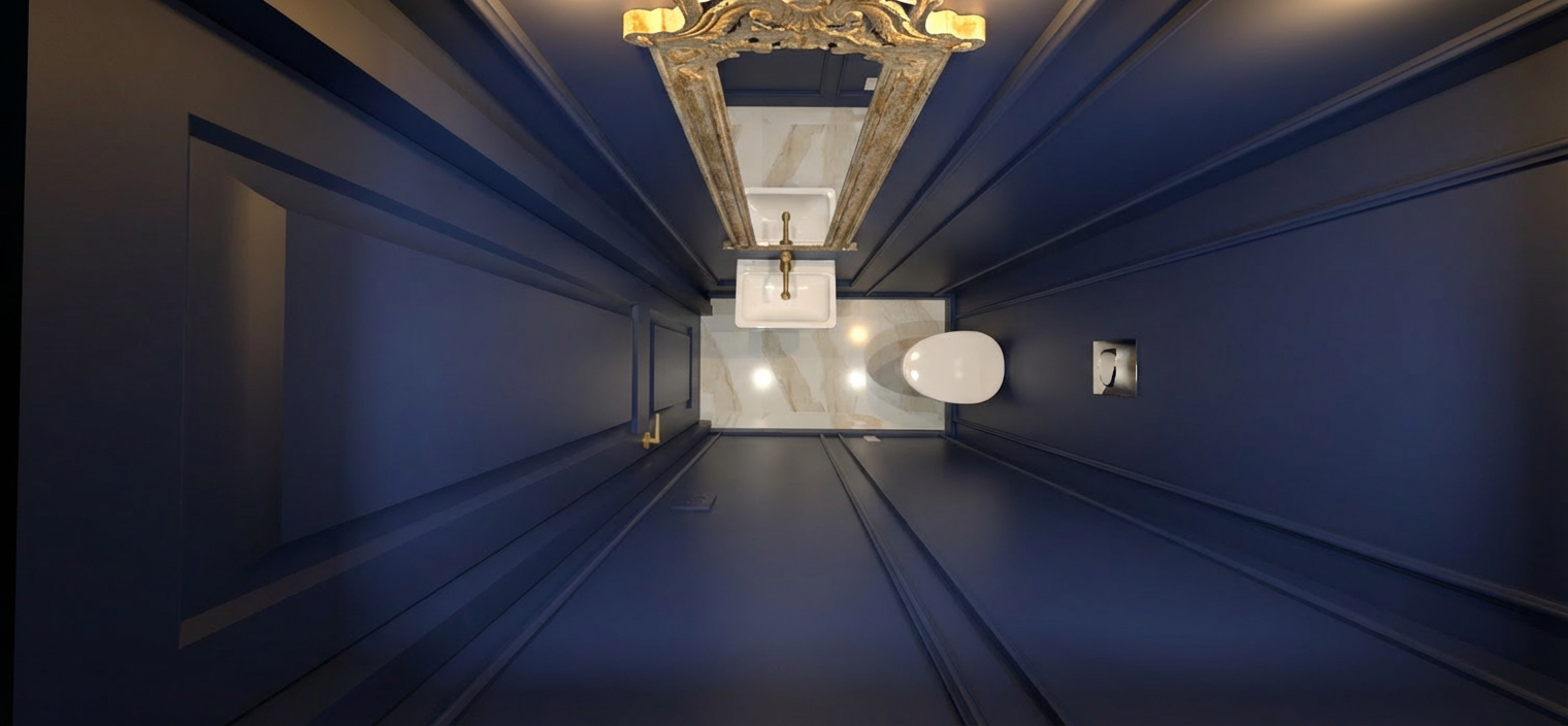 transform this bathroom into a refined high end modern design while preserving the exact layout and camera angle completely remove the existing floor mounted toilet and replace it with a built in wall mounted wc with a concealed cistern and a minimal flush plate integrated into the wall the old toilet must not remain use large format tiles with minimal joints and a clean cohesive look create a subtle contrast by using slightly darker stone tiles in the shower area and lighter neutral tiles elsewhere keep the design minimal and balanced avoiding random materials or excessive elements upgrade the shower to a slim or frameless glass enclosure with clean black or minimal profiles improve lighting with soft warm indirect light to enhance depth the result should look like a realistic high end architectural bathroom not ai generated do not introduce new elements unless they fit a clean minimal architectural design