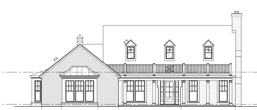 render to make this look realistic white painted brick with a shingle stle roof all trim will be painted white and the oberall aesthetic is a cottage style house add surrounding context like trees vegetation there is a driveway in front of the entire house