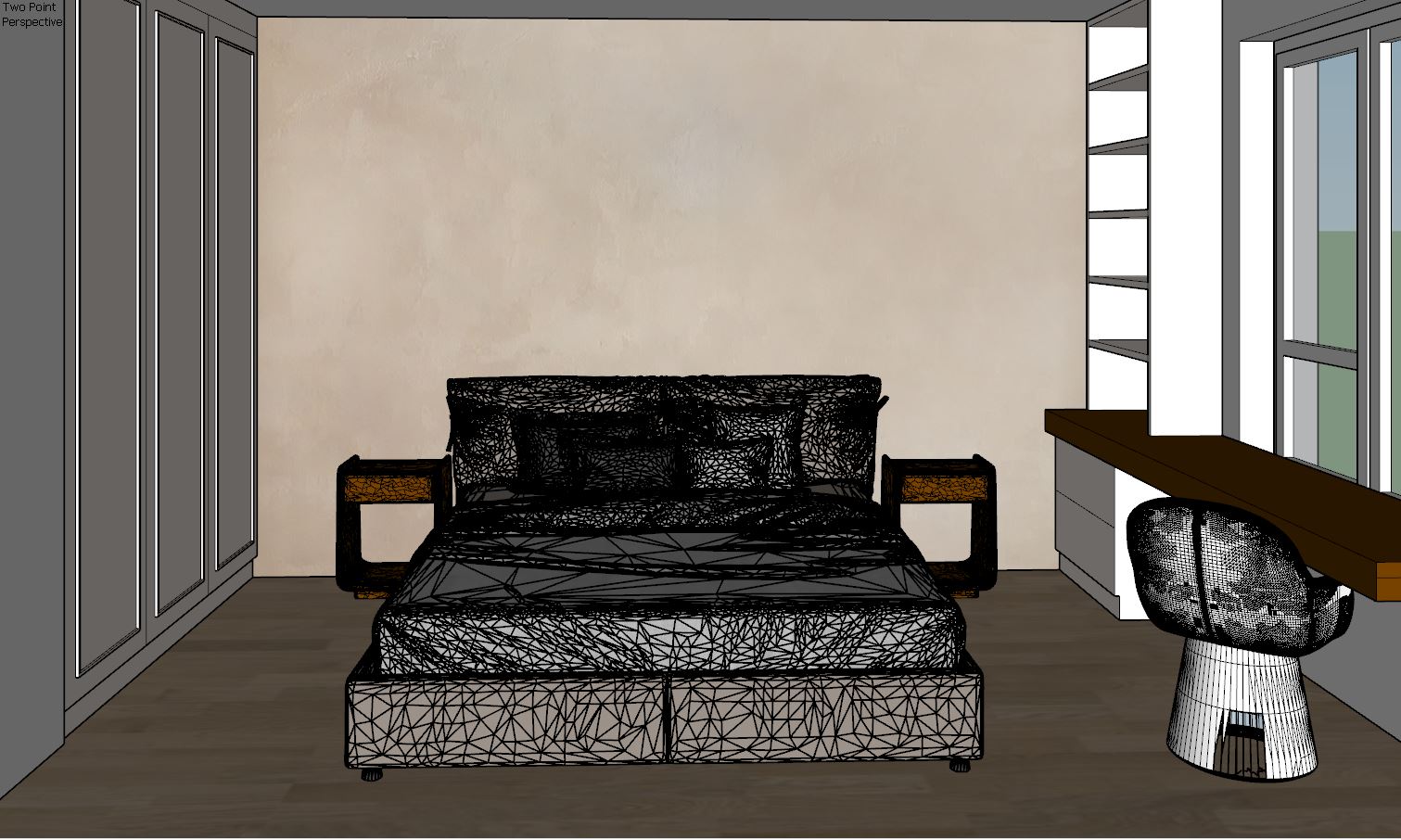 modern organic bedroom interior calm and soothing atmosphere bright and airy space with a natural harmonious character minimalist contemporary design combined with organic softness color palette of warm light greys sandy beige tones sage green used subtly on furniture textiles and decorative elements clean fresh and balanced visual composition natural wood surfaces with visible grain light to medium warm wood tones cream colored limewash walls with soft uneven texture linen fabrics with gentle natural texture light and breathable soft layered textiles on the bed creating a cozy feeling rounded and curved forms in furniture bedside tables chair backs and lighting soft organic silhouettes breaking the strict modern geometry comfortable and welcoming design subtle chrome accents in lighting details and fixtures delicate reflections adding a refined modern touch without overpowering the natural mood soft natural daylight diffused lighting no harsh contrasts high end architectural interior visualization realistic materials elegant styling