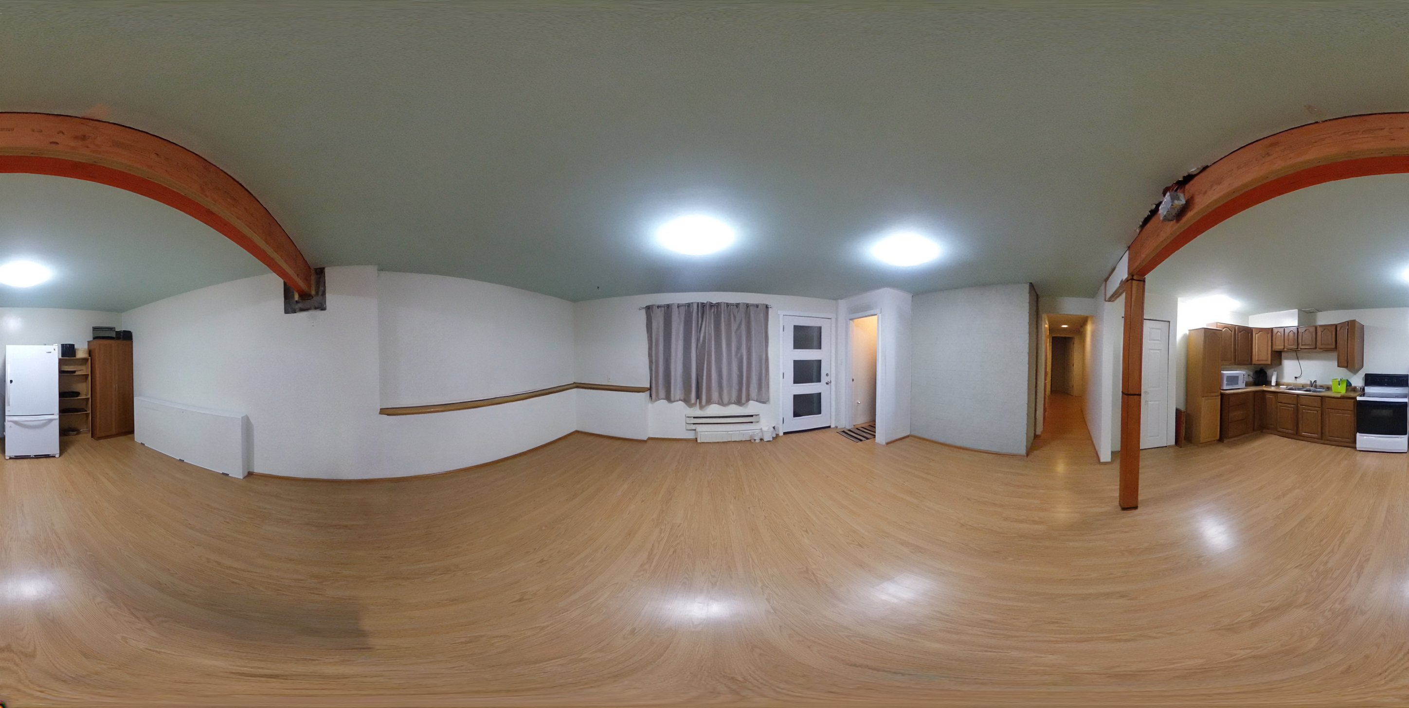 make the whole floor a very light blonde oak laminate floor paint the walls a and ceiling white paint any window casing white try and provide a modern country farmhouse look baseboards are all 3 5 all the way around and painted white 2 5 x 5 trim around all doors place bi fold shaker style doors for the closet